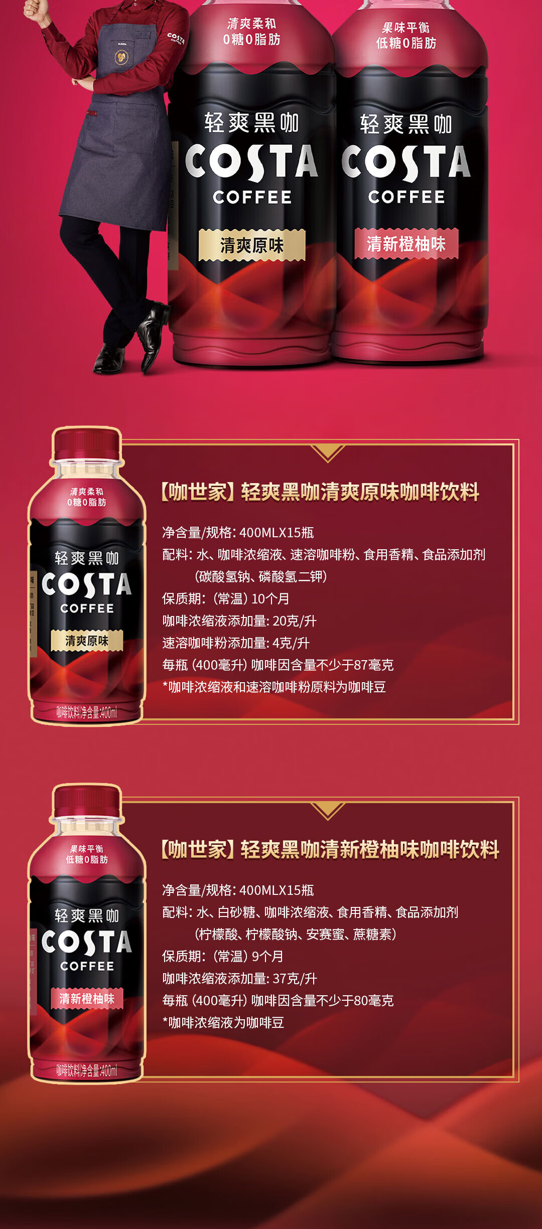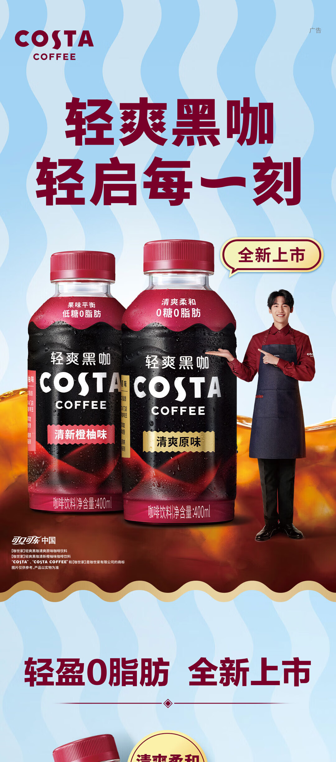 COSTA咖世家清爽黑咖啡清新橙柚味400ml