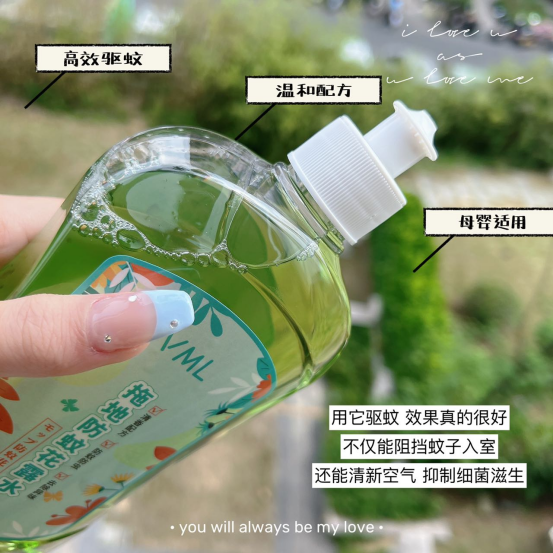 1:温和安全 成分天然 柔肤0刺激 ;安全物理防护拒绝添加有害成分,每一瓶都可放心,给予宝宝自然呵护,真正做到安心驱蚊2:强效驱蚊的同时还能清新去异味,形成无形防护层 远离蚊虫叮咬,天然精华萃取 驱蚊更健康3:适用于多种场景 倒在毛巾上用来擦拭桌子可以让你整个卧室都默默无蚊~还能起到清新空气的作用