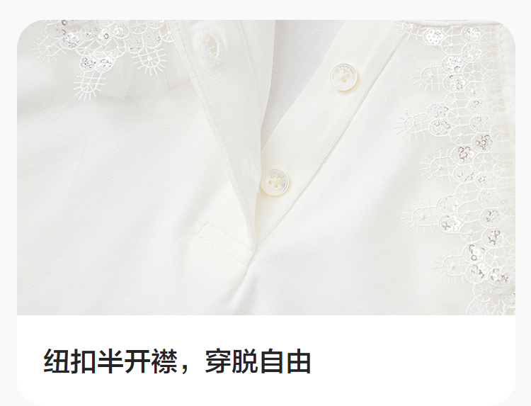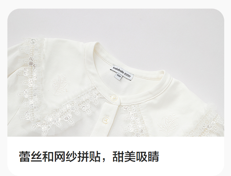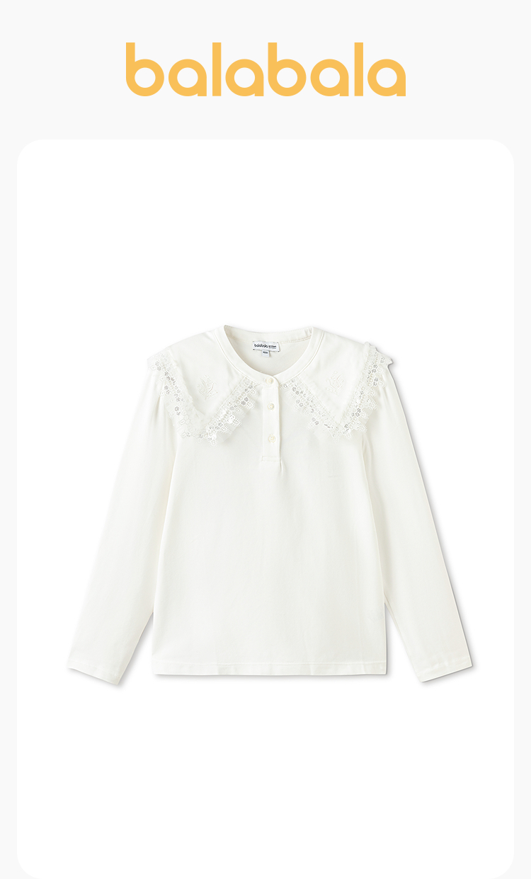 巴拉巴拉儿童长袖t恤女童春季上衣甜美打底衫半开襟舒适精致刺绣