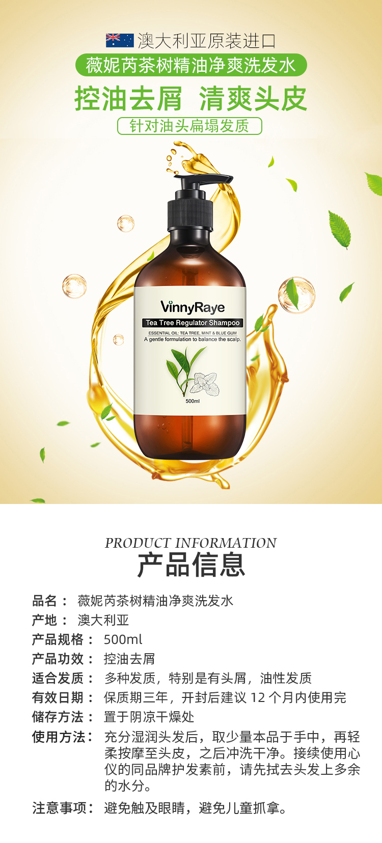 澳洲原装进口 薇妮芮 茶树精油洗发水露滋润控油保湿油性发质留香