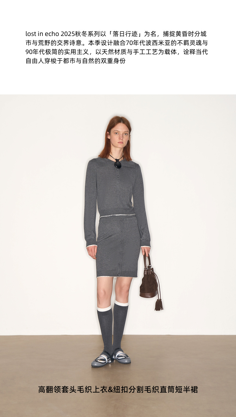 lost in echo2025秋冬新款高级三醋酸羊绒针织衫毛衣半身裙套装女
