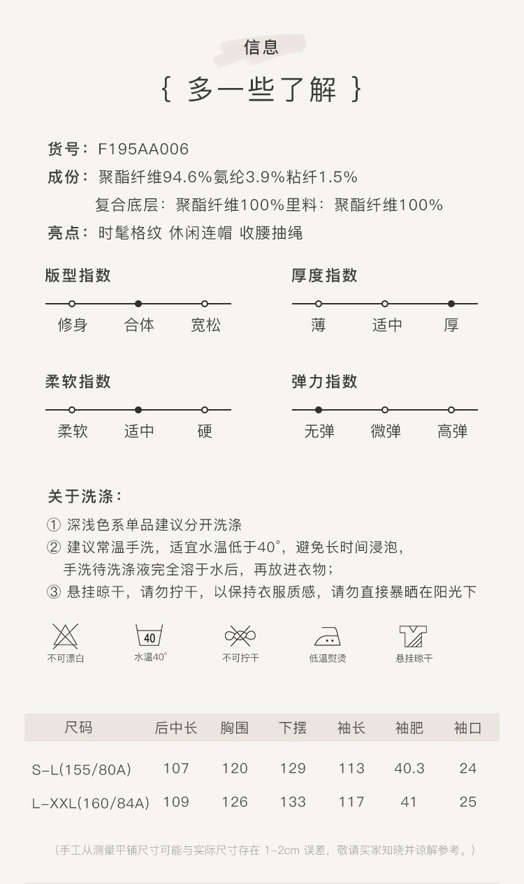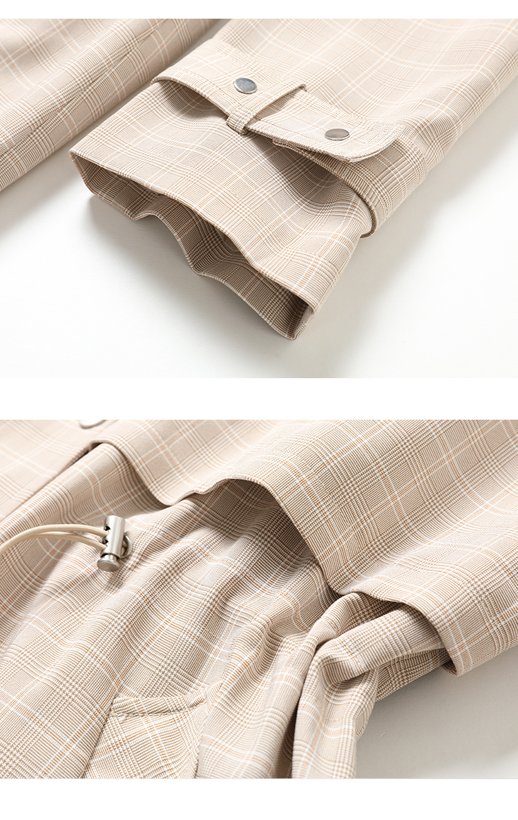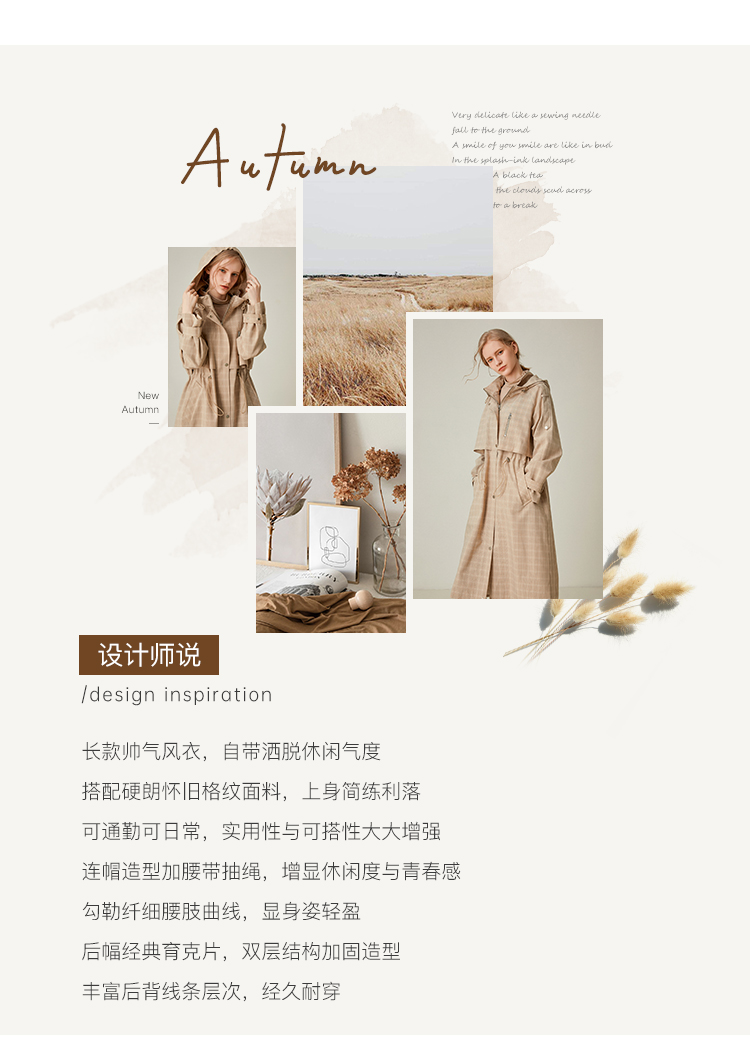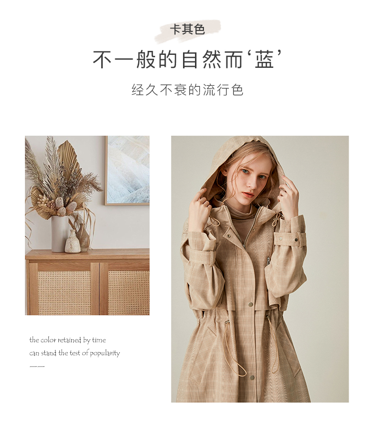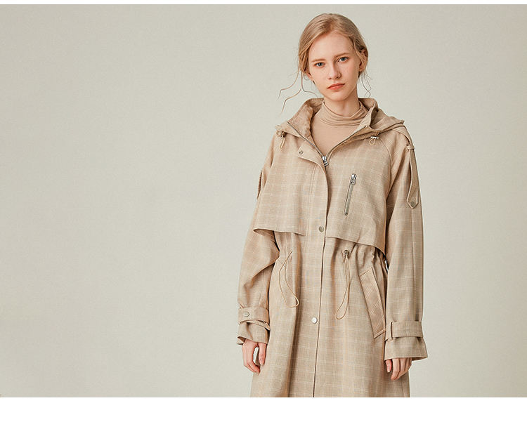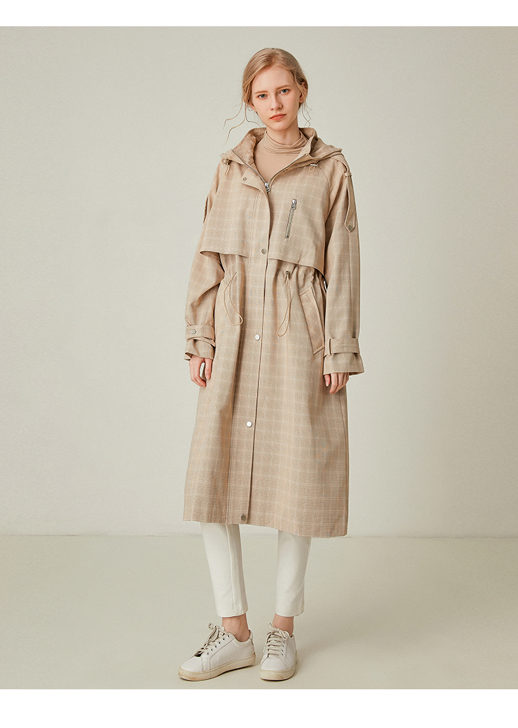Famecoco范可儿风衣女格子连帽收腰假两件中长款F195AA006