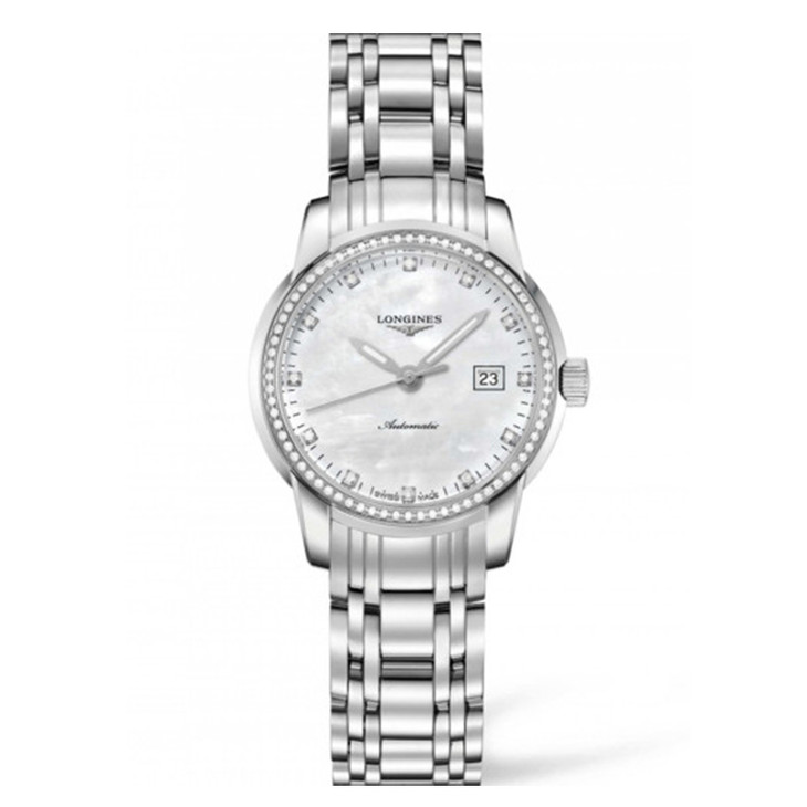 镜面 材质 | 蓝宝石水晶玻璃 | 表盘 | 精钢镶钻表壳 镶嵌72颗顶级韦塞尔顿VVS级钻石,总重0.208克拉 白色珍珠贝母表盘,镶嵌12颗顶级韦塞尔顿VVS级钻石,总重0.034克拉 大三针 日期显示 |