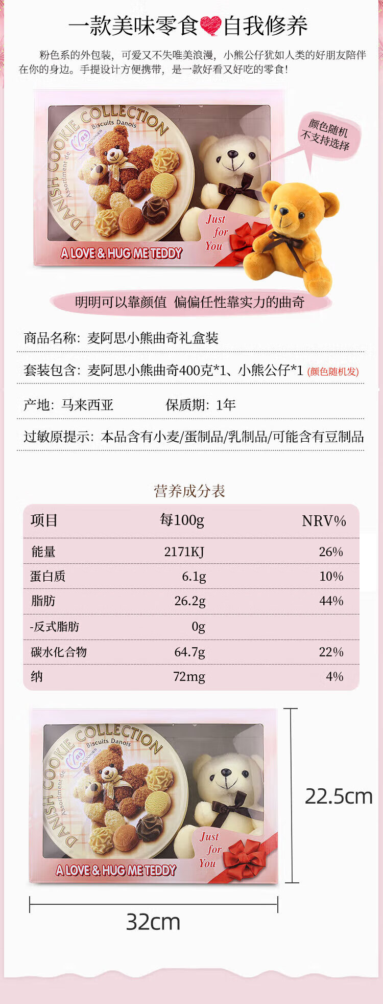 麦阿思小熊松脆曲奇饼干礼盒400g