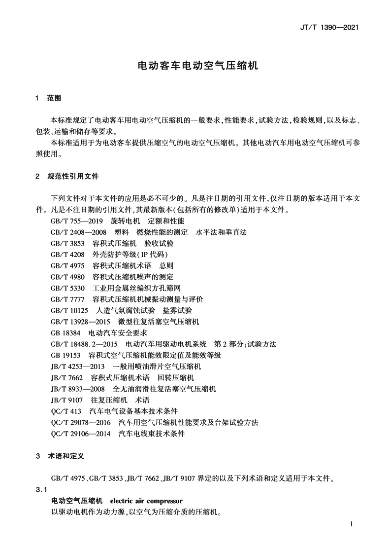 书名:电动客车电动空气压缩机(JT/T 1390—2021)