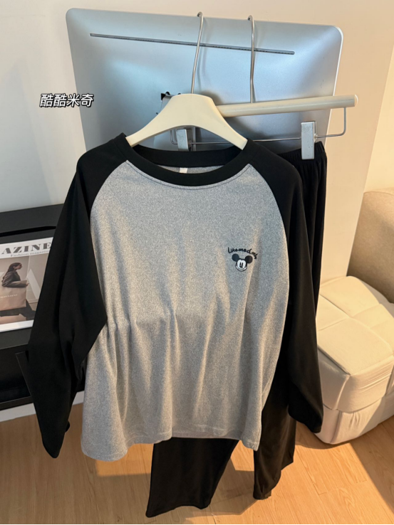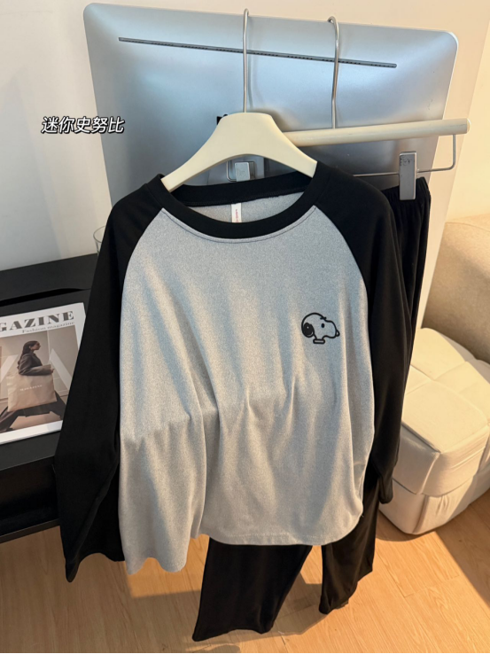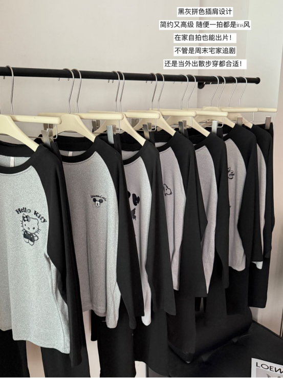 黑灰拼色插肩设计 简约又高级 随便一拍都是ins风 在家自拍也能出片! 不管是周末宅家追剧 还是当外出散步穿都合适!