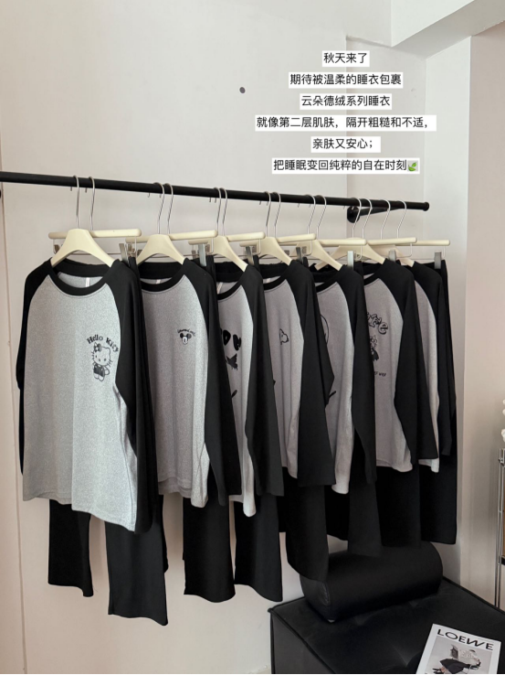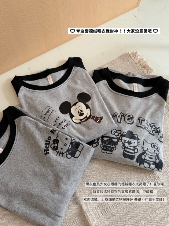 云朵德绒系列睡衣就像第二层肌肤, 隔开粗糙和不适,亲肤又安心; 把睡眠变回纯粹的自在时刻🍃 🖤这套德绒睡衣我封神!!大家没意见吧 黑灰色系少女心爆棚的德绒睡衣太高级了!巨软糯 就喜欢这种特别的高级感满满,巨软糯! 双面德绒,上身细腻柔软暖呼呼 关键不严重不显胖! 颜值和质感真的好好!好适合秋冬宅家睡觉穿!