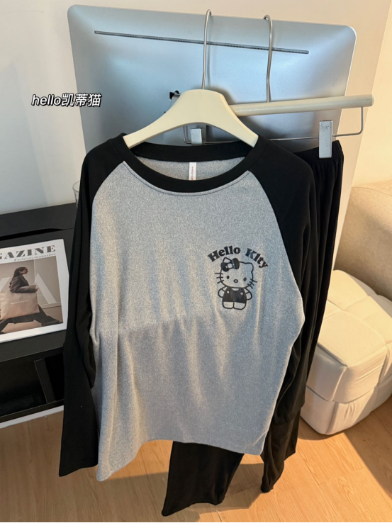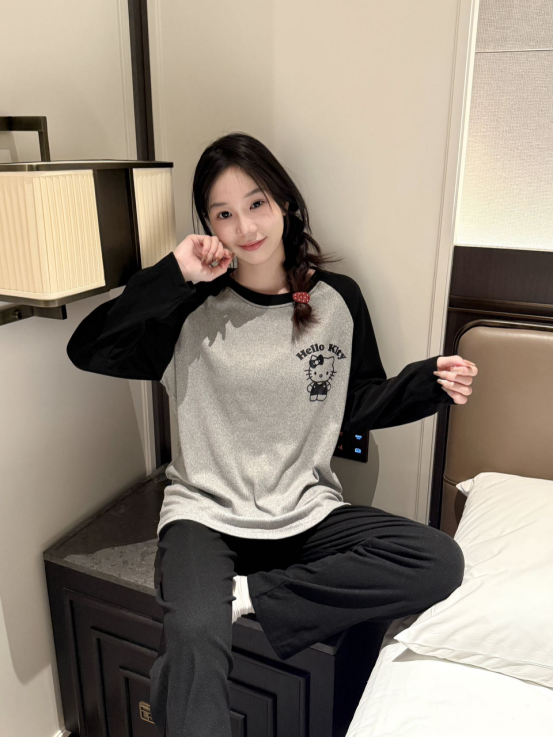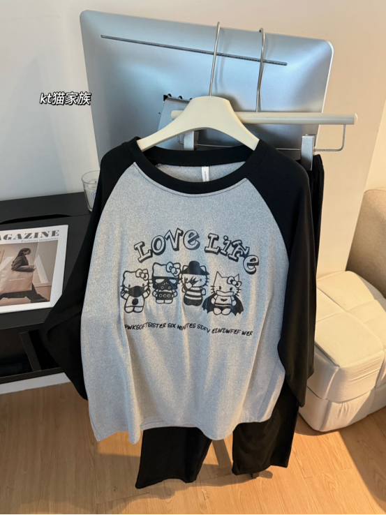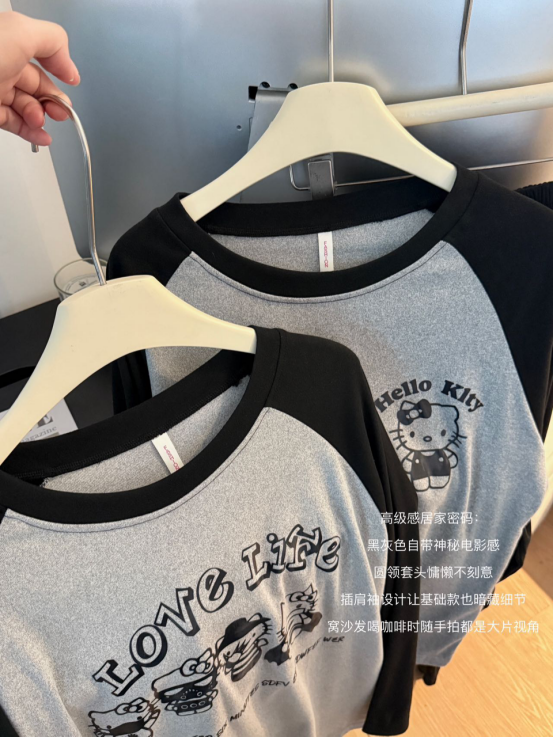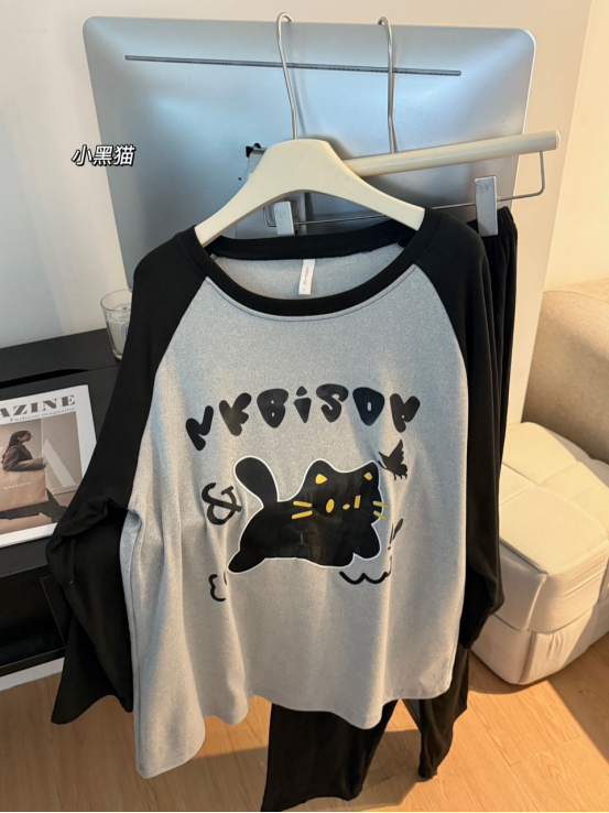 高级感居家密码: 黑灰色自带神秘电影感 圆领套头慵懒不刻意 插肩袖设计让基础款也暗藏细节 窝沙发喝咖啡时随手拍都是大片视角