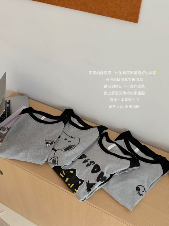 日系插肩的睡衣很罕见!🤙🏼🤙🏼🤙🏼 想象一下穿着柔软的德绒睡衣抱着平板在家追剧就很舒适!! 可爱卡通印花设计显得整体简单又不单调 而且这种风格不挑人穿,想给设计师加鸡腿 宅家的舒适感,松弛有序就是最好的状态✨ 获得幸福感其实很简单 是回到家卸下一身的疲惫 换上舒适又柔软的家居服 再读一本喜欢的书 窗外大风 家里温暖