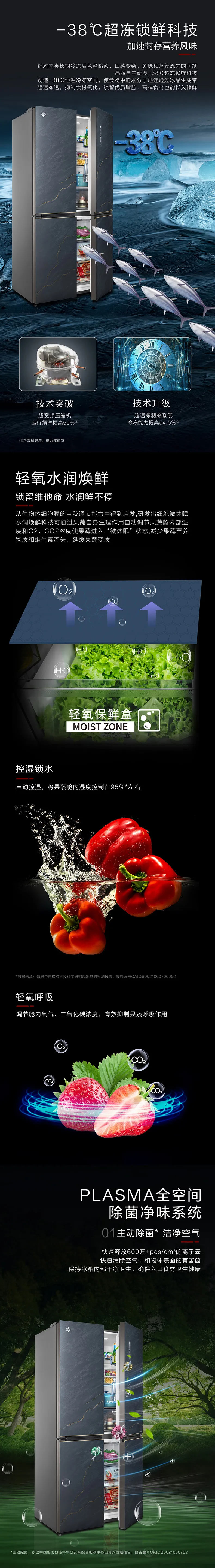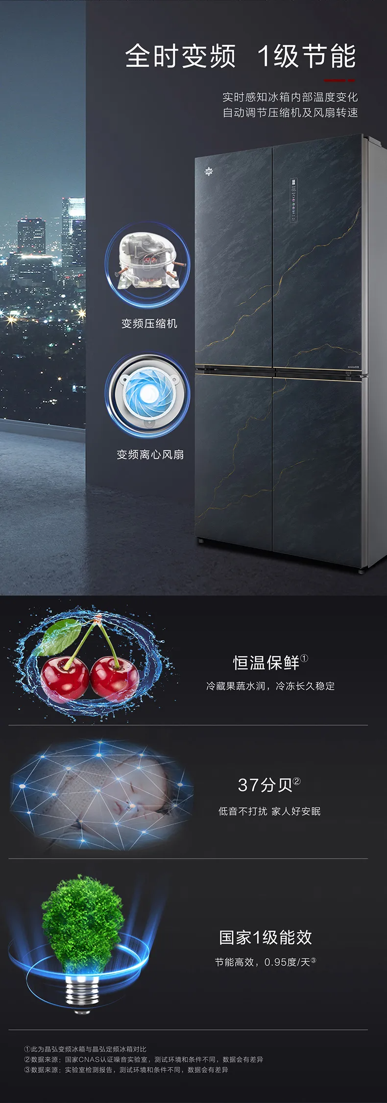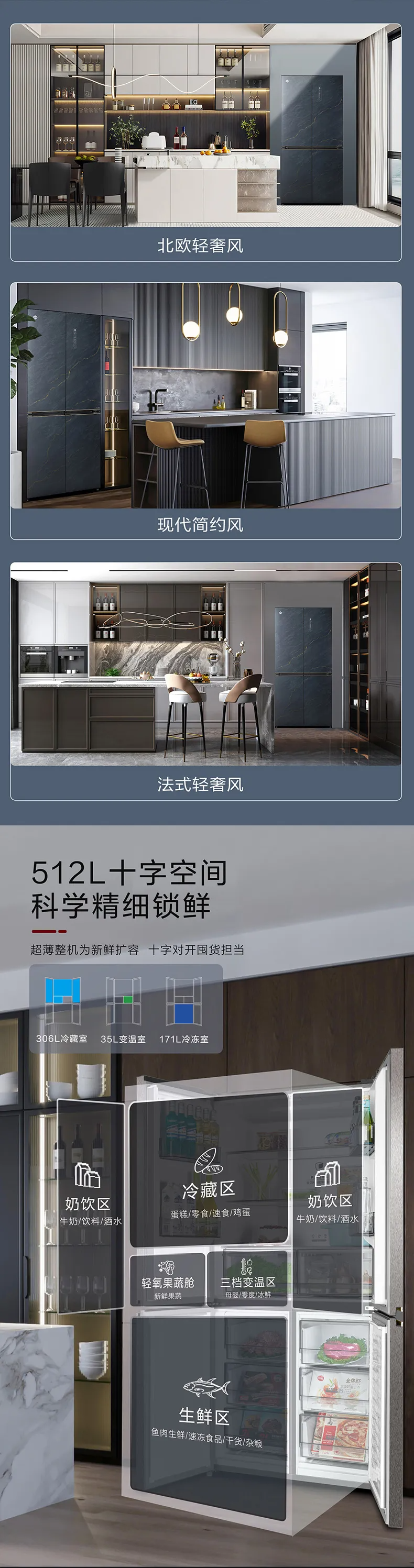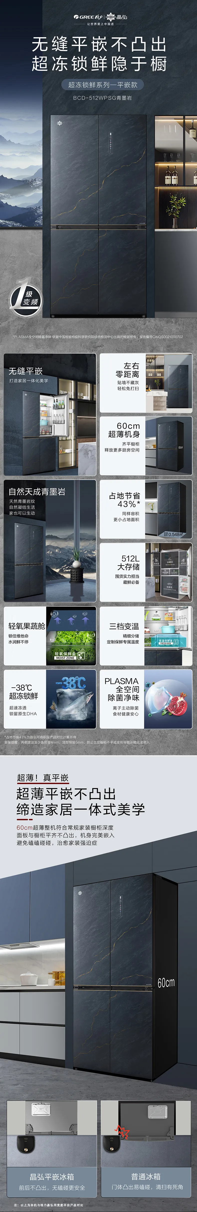 晶弘·十字对开门冰箱 512L BCD-512WPSG/青墨岩