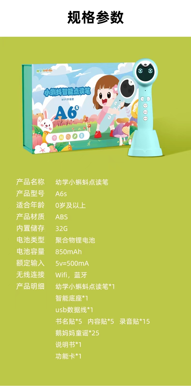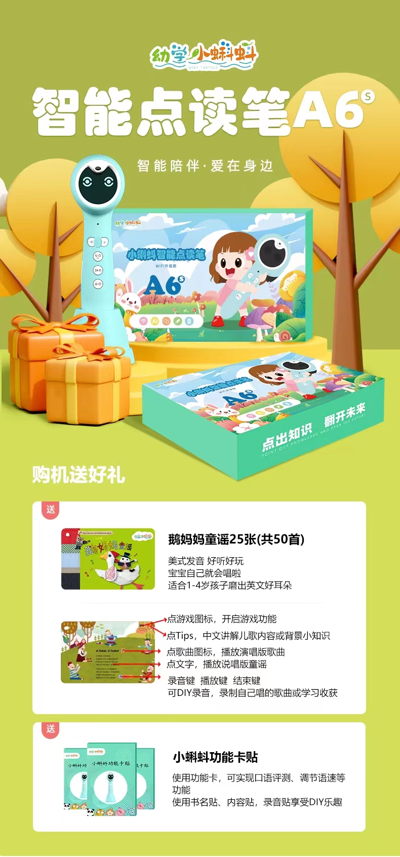 【VIP粉丝专享】 小蝌蚪A6S标配32G送鹅妈妈童谣50首,共25张卡