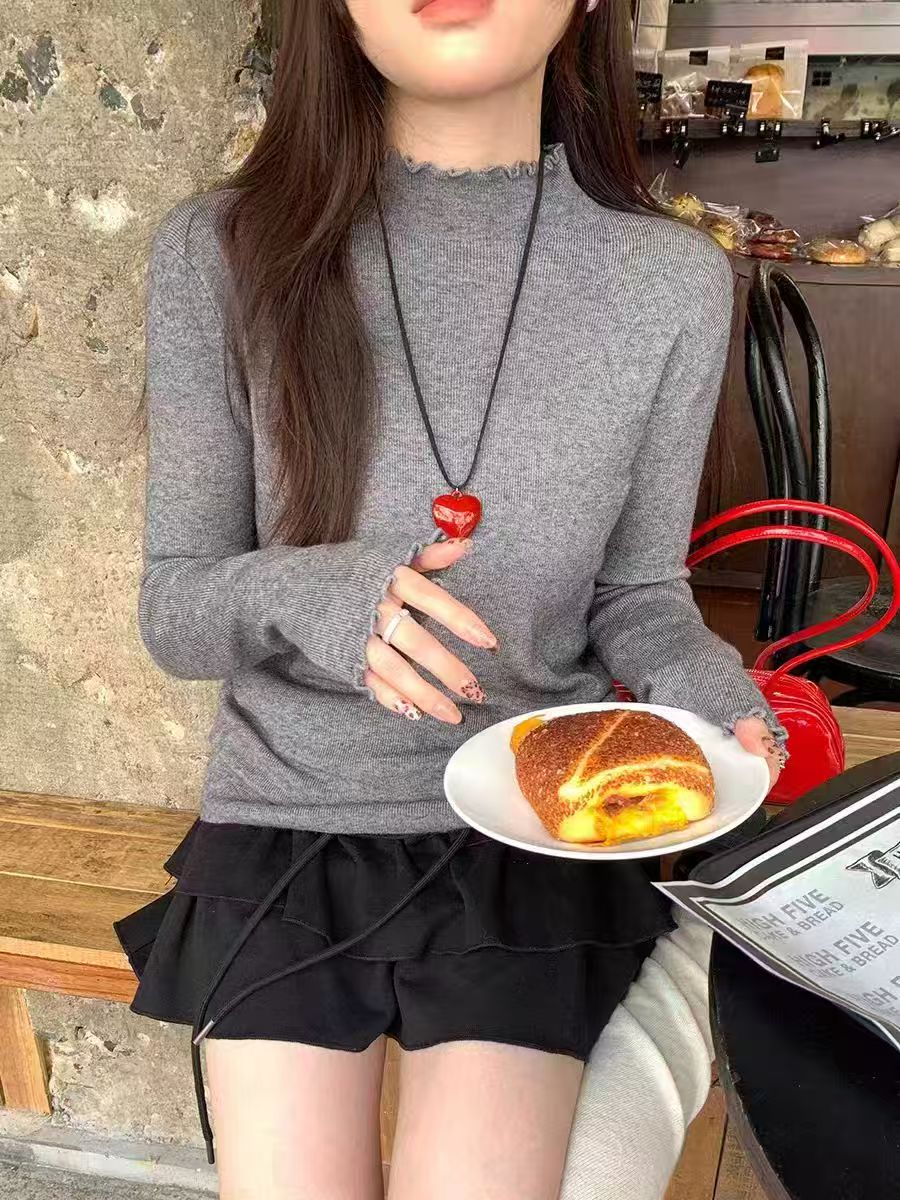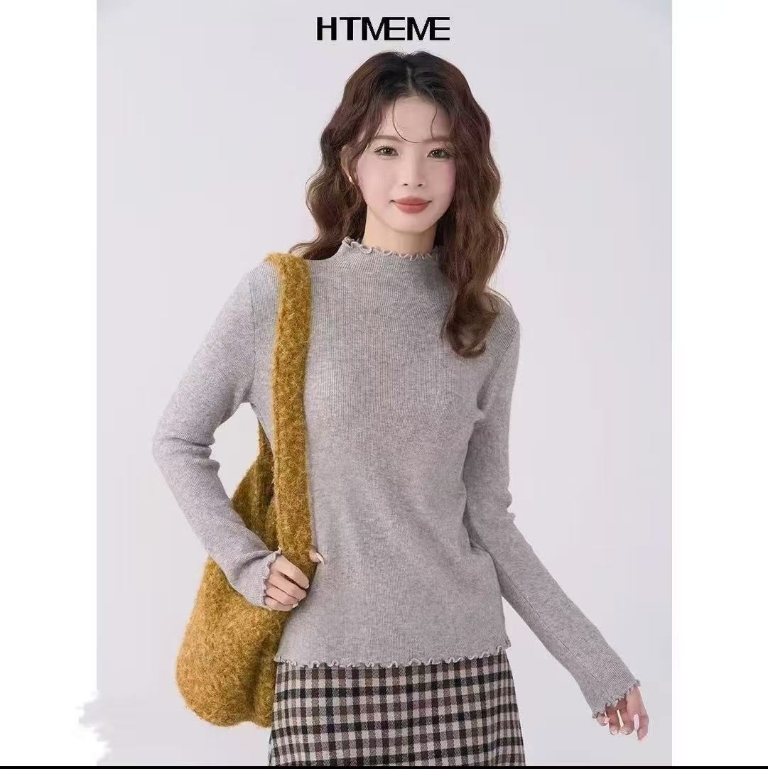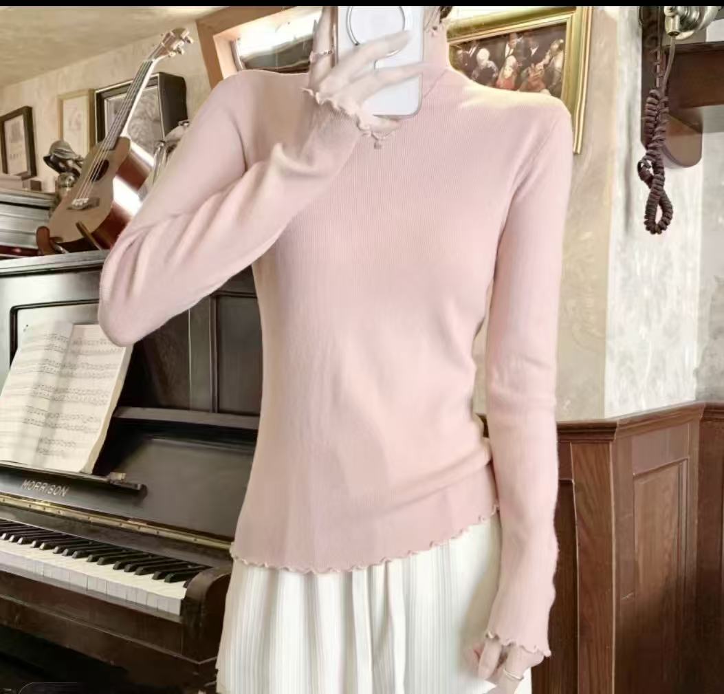 【YW】无忧购 糖果色木耳中领针织打底衫(截单后3-5天发货)