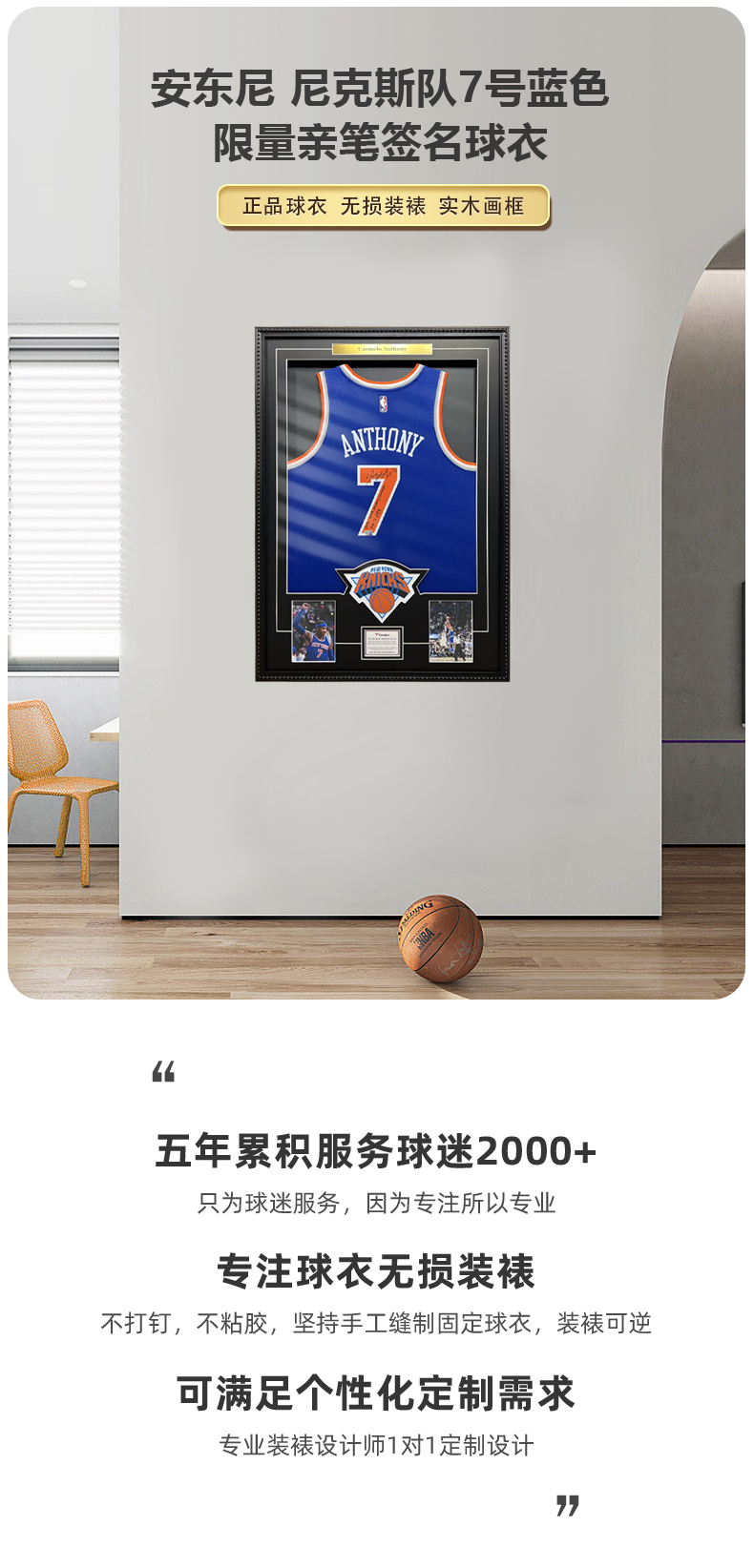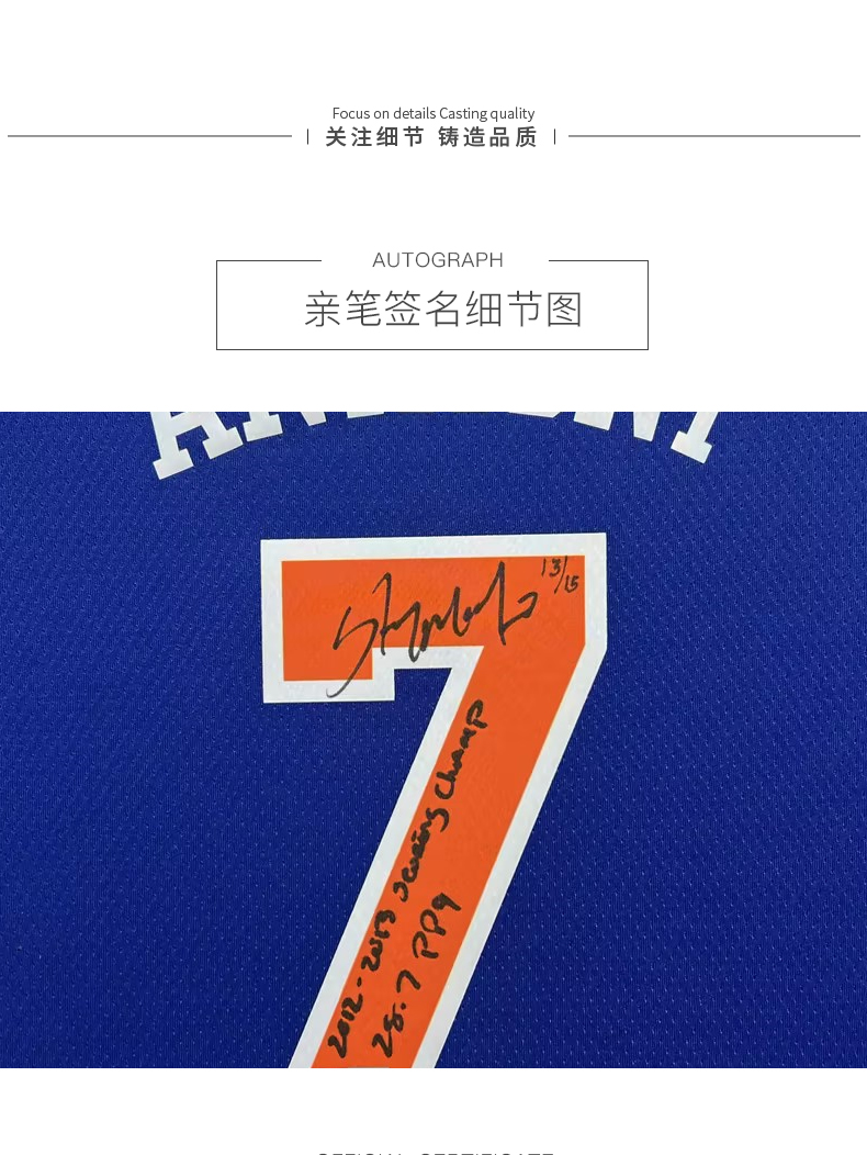 收藏系列 安东尼 尼克斯队7号蓝色 限量亲笔签名球衣