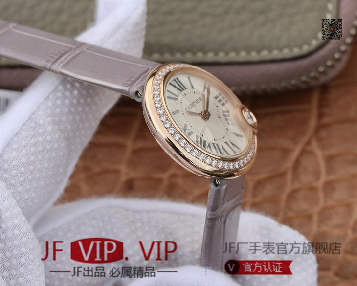 卡地亚BALLON BLANC DE CARTIER系列腕表。这款女士珠宝腕表的最大亮点在于表壳4时位置点缀一颗光华璀璨的钻石