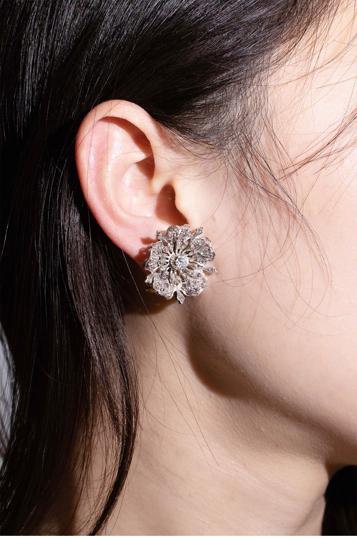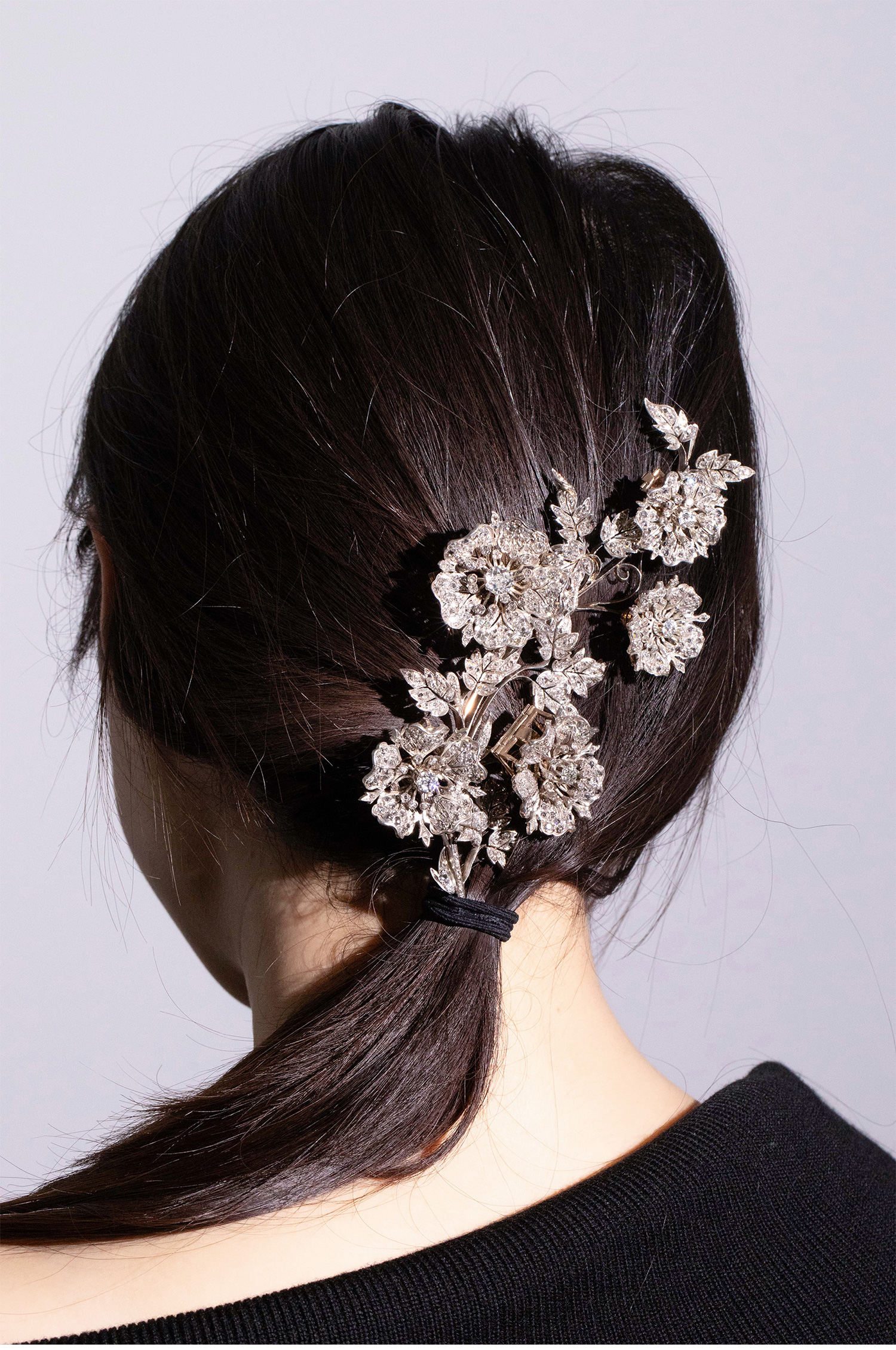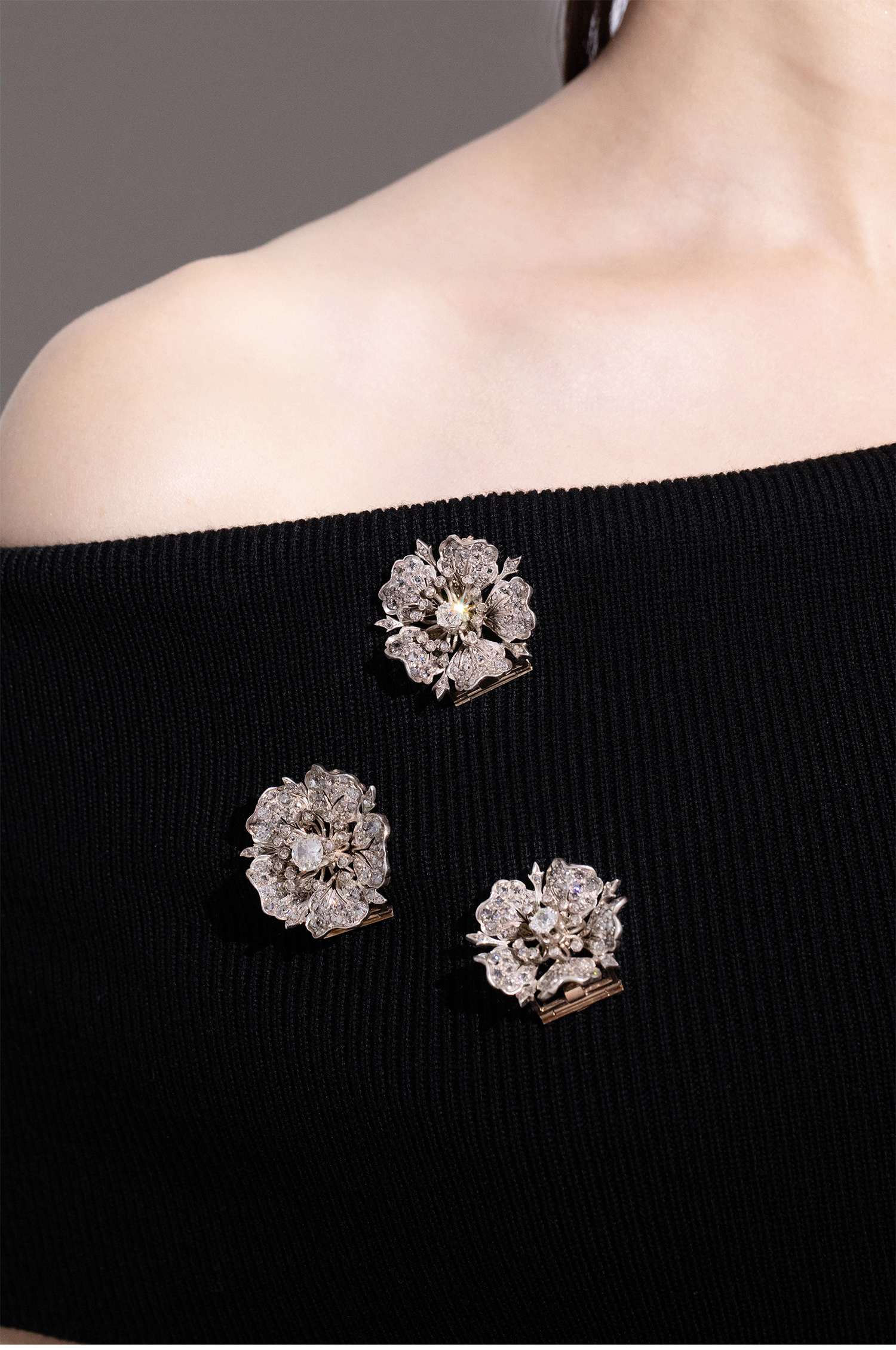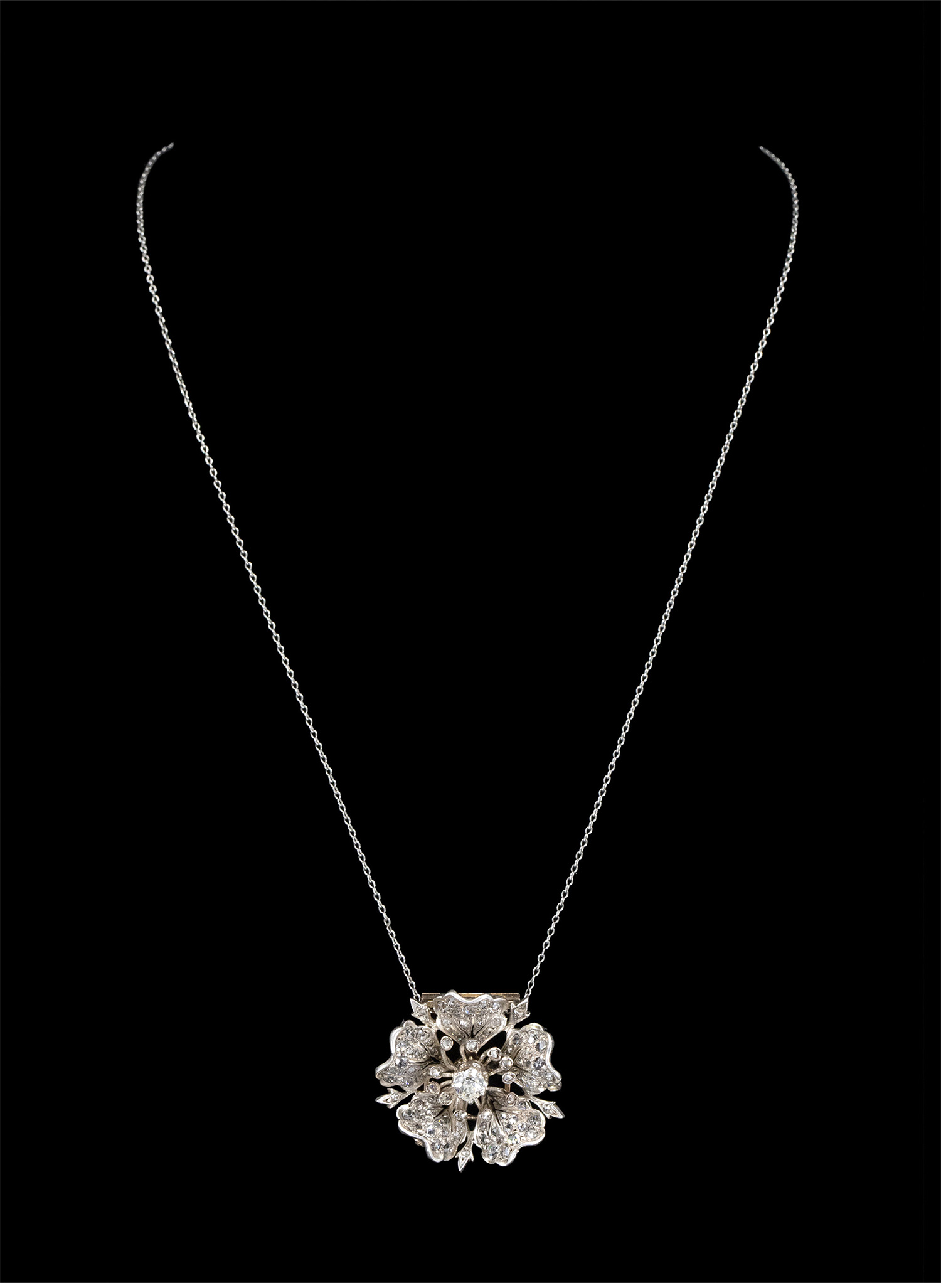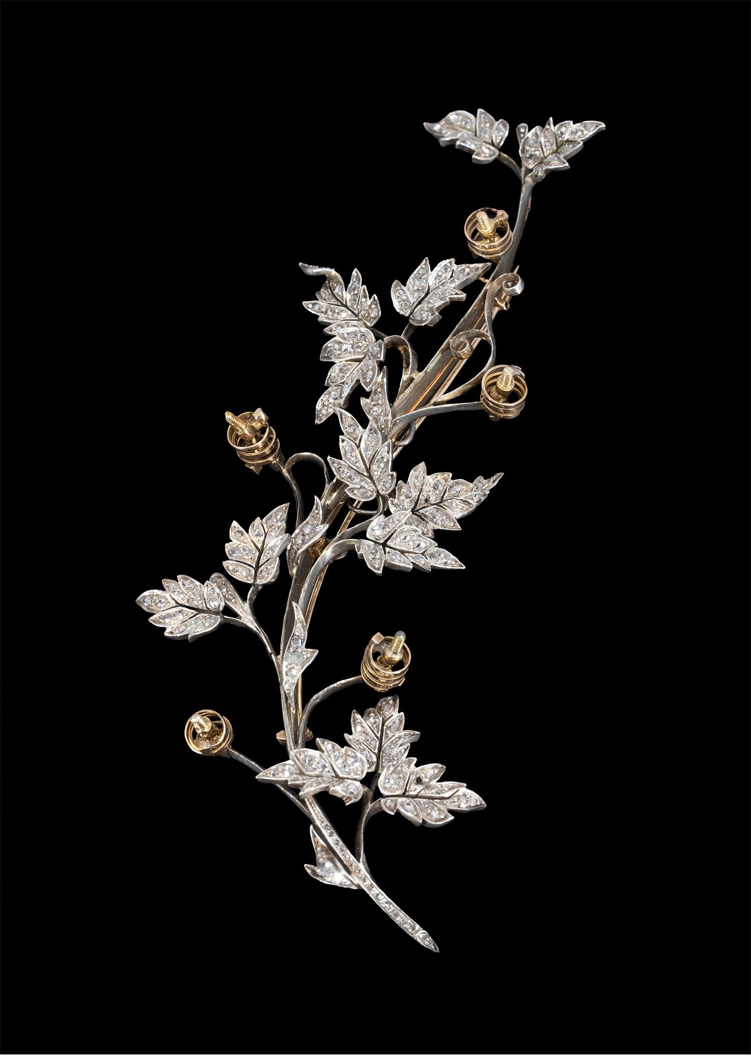 1850年代法国出品花卉主题黄金底纯银镶嵌钻石En Tremblant颤动式可拆卸多功能胸针