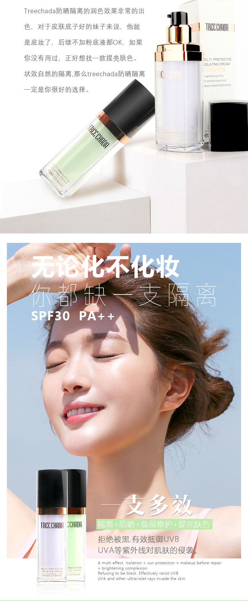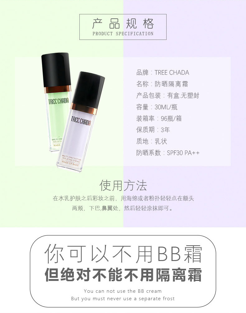 MMT 泰国TREECHADA 隔离霜tr遮瑕痘印提肤色保湿妆前乳打底隔离液保湿
