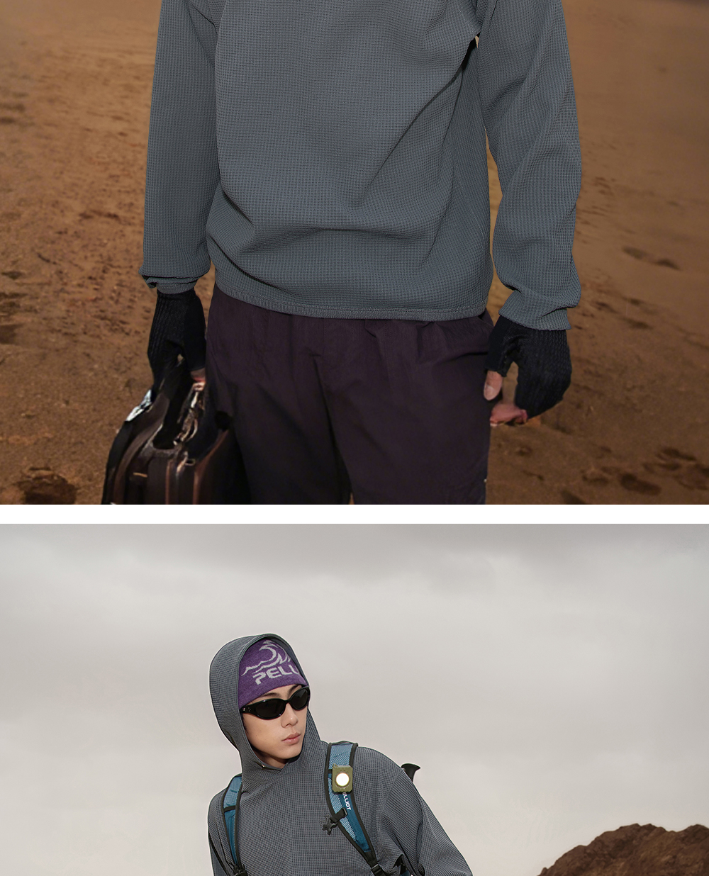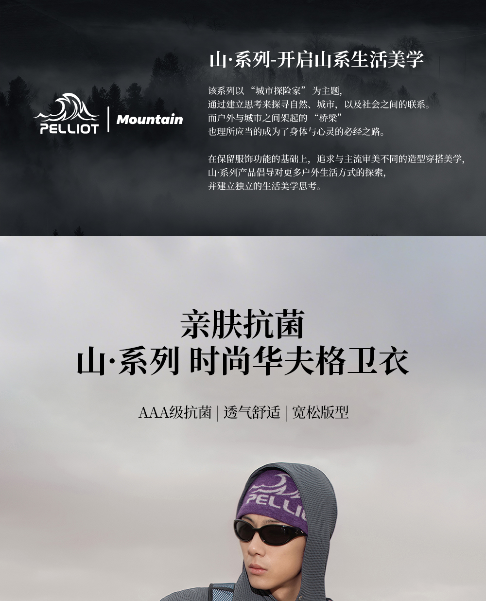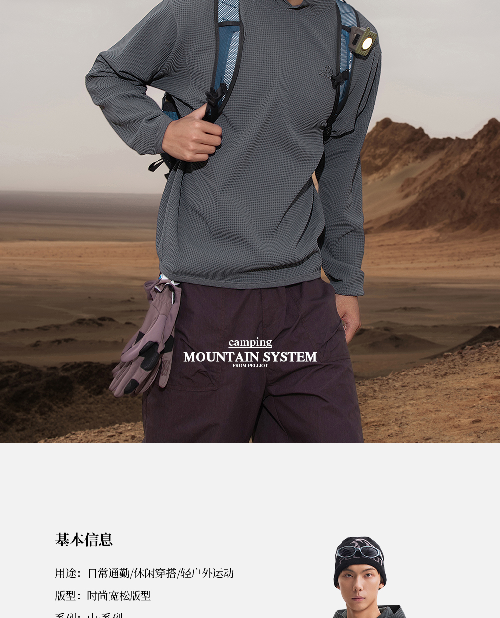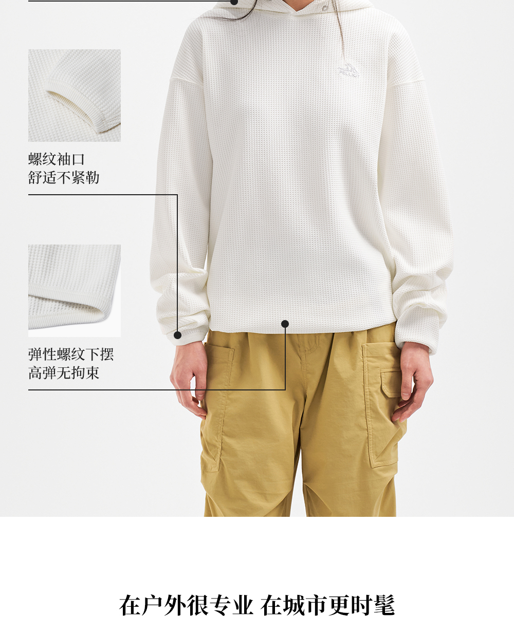【山系】伯希和户外长袖T恤男女同款亲肤透气连帽卫衣华夫格上衣