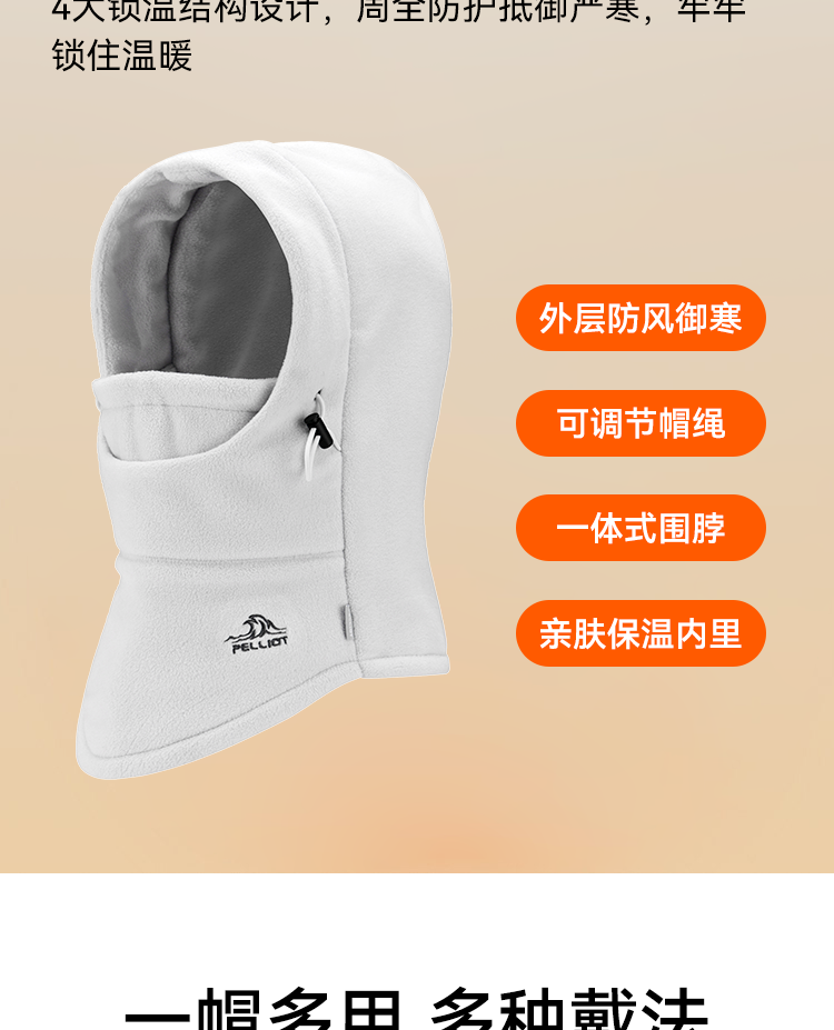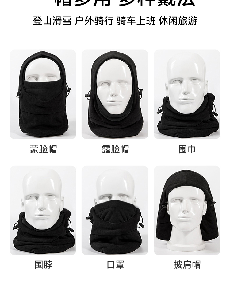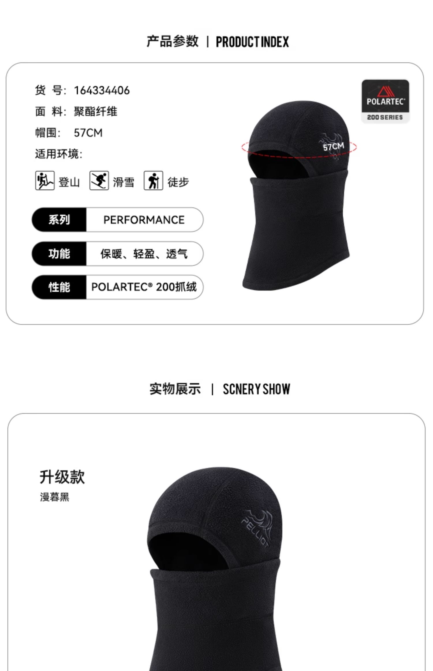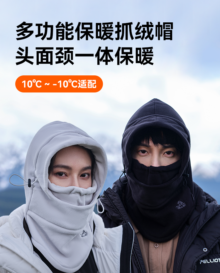 伯希和户外抓绒帽子男保暖脖套面罩防风头套围脖骑行帽登山装备女
