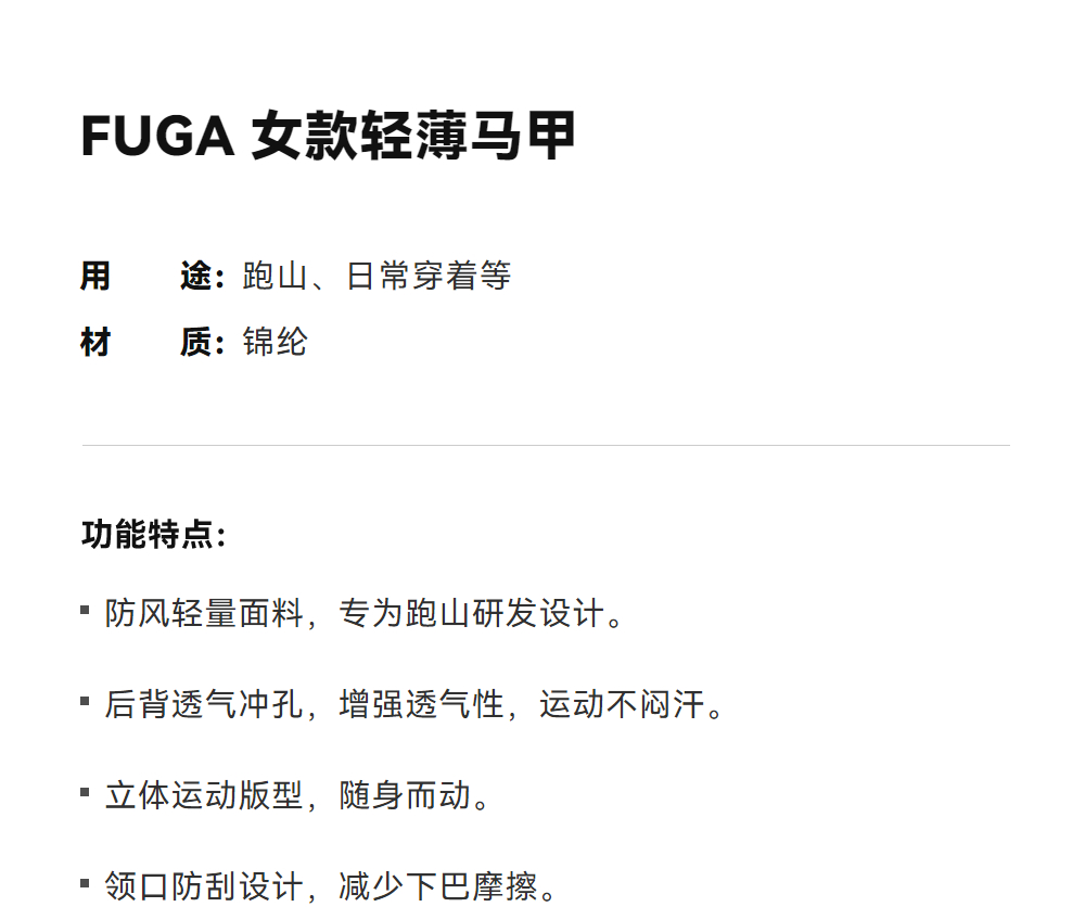 KAILAS凯乐石 FUGA 女款轻薄马甲 KG2526210【Z】