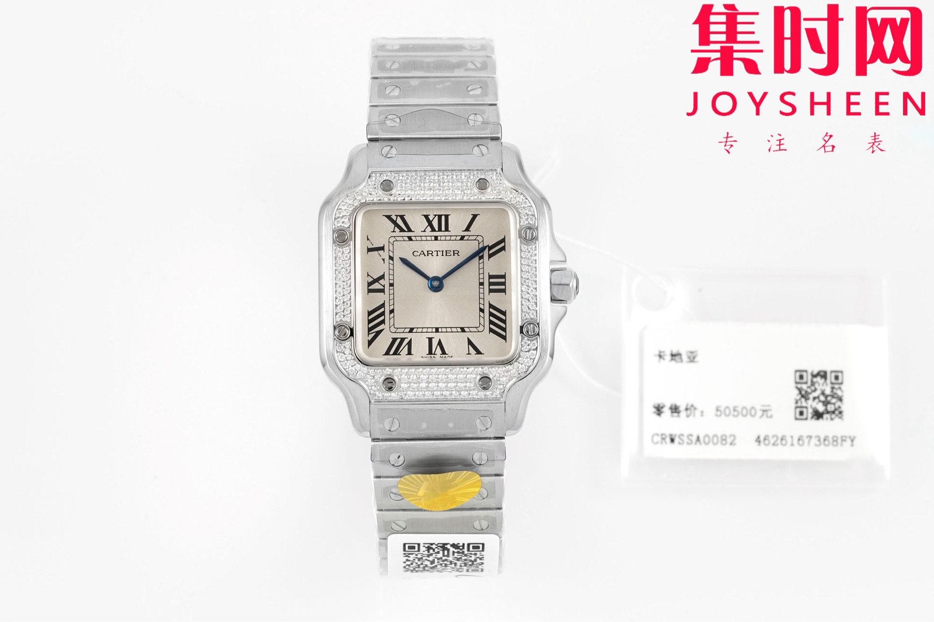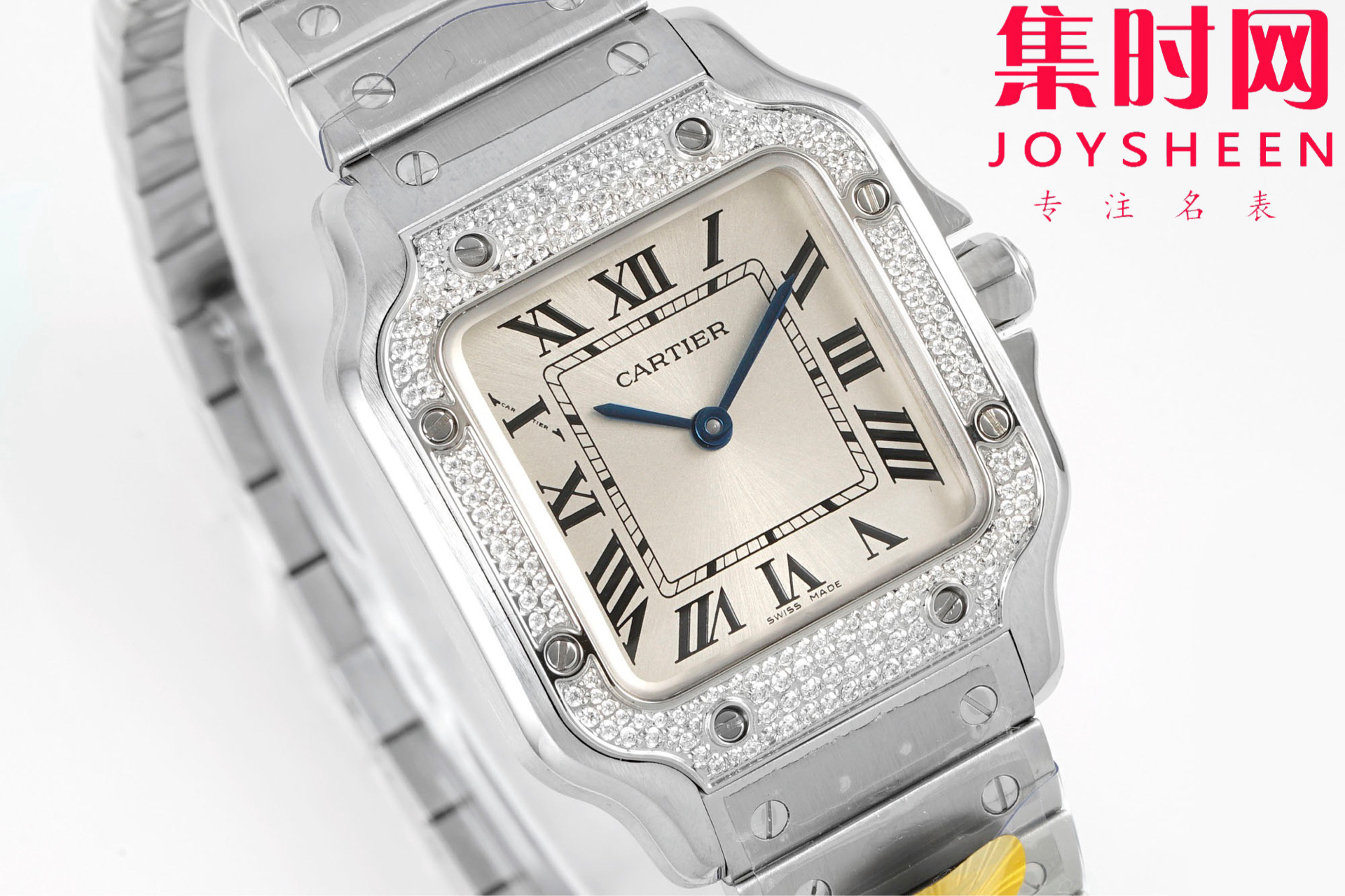 AF卡地亚桑托斯 山度士系列 女款迷你尺寸 迷你山度士 女士腕表 表盘尺寸:27×34.5mm 316L精钢表壳表带 防刮损蓝宝石镜面 瑞士石英机芯