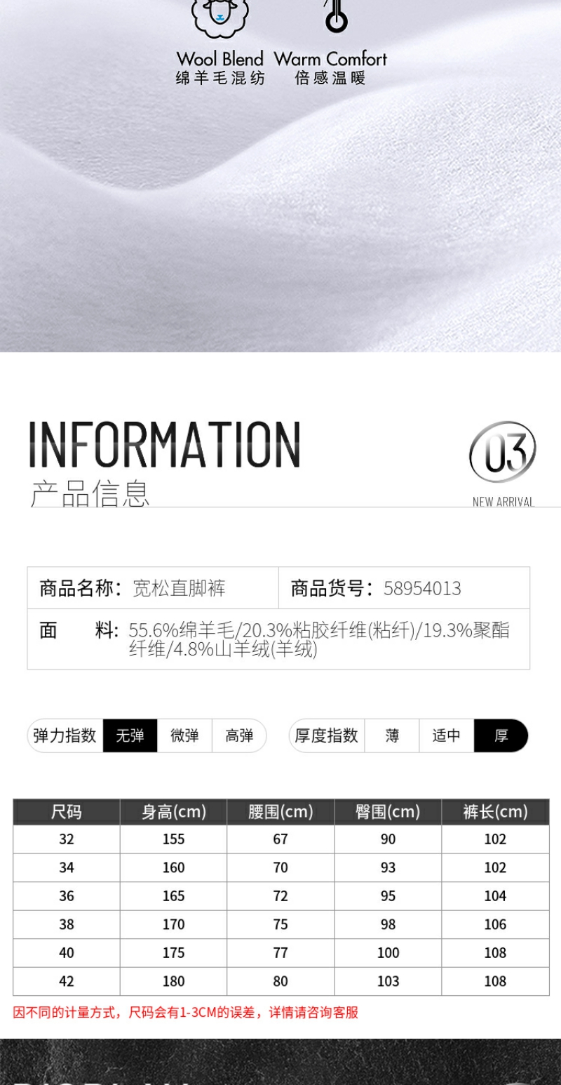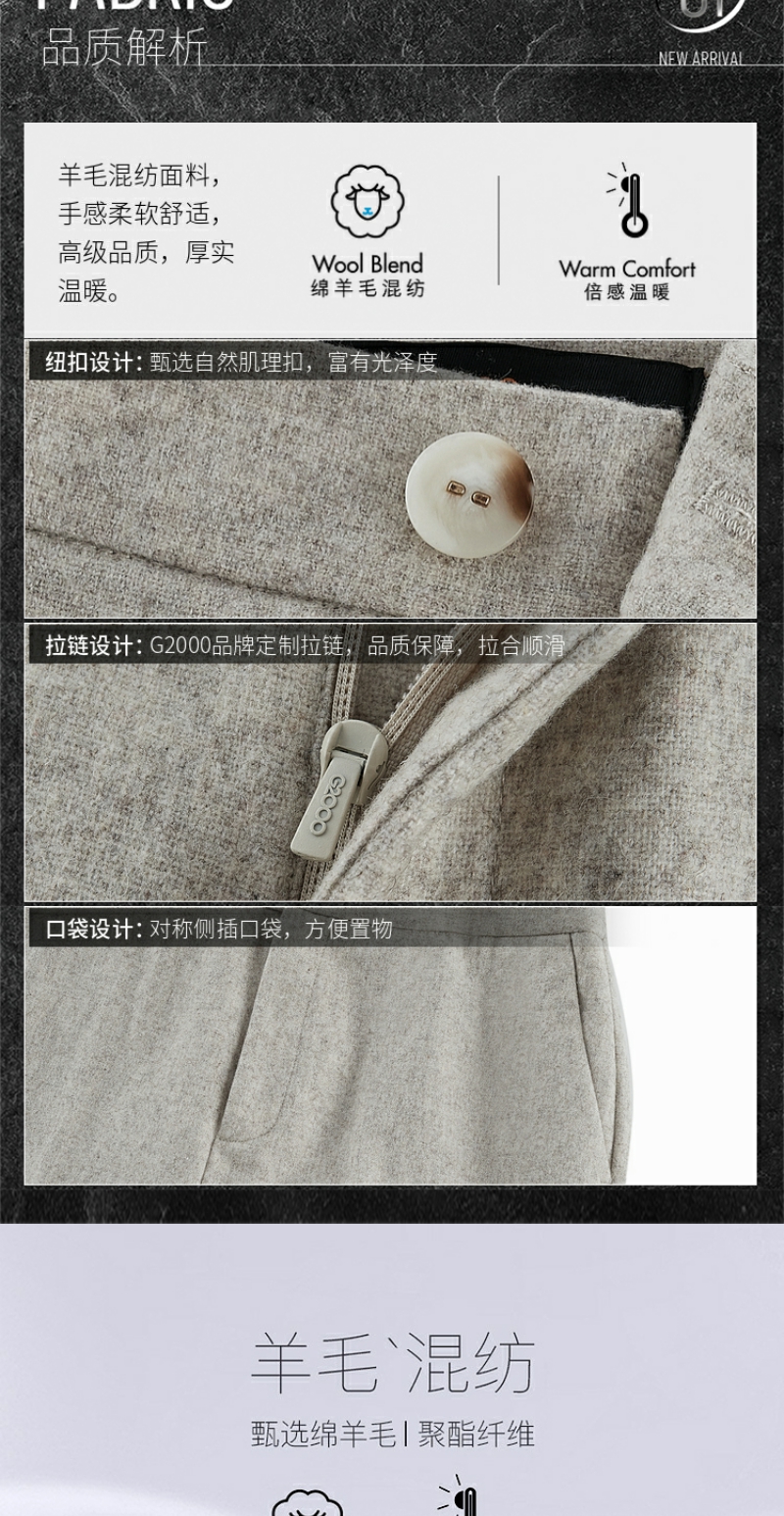 G2000女装FW25【直脚裤/绵羊毛羊绒混纺】保暖通勤西裤58954013
