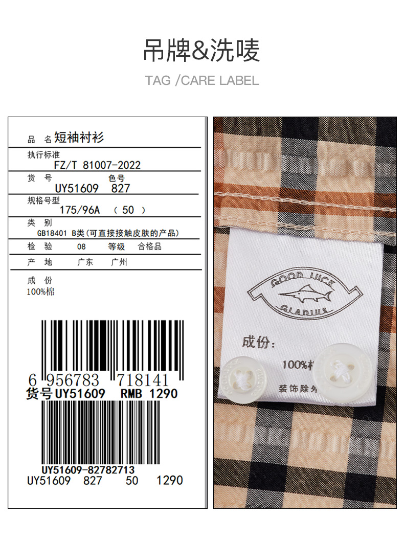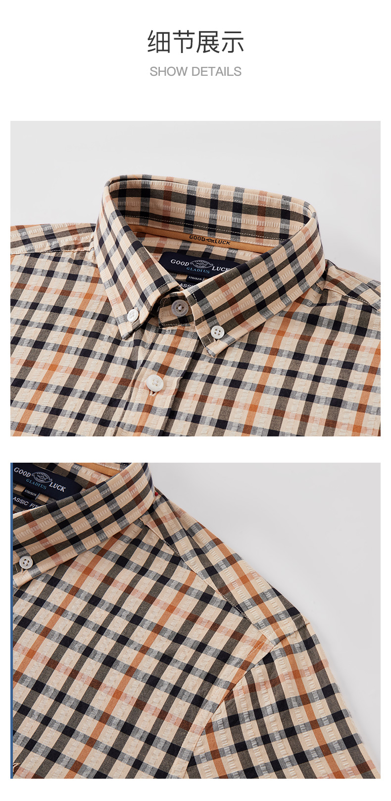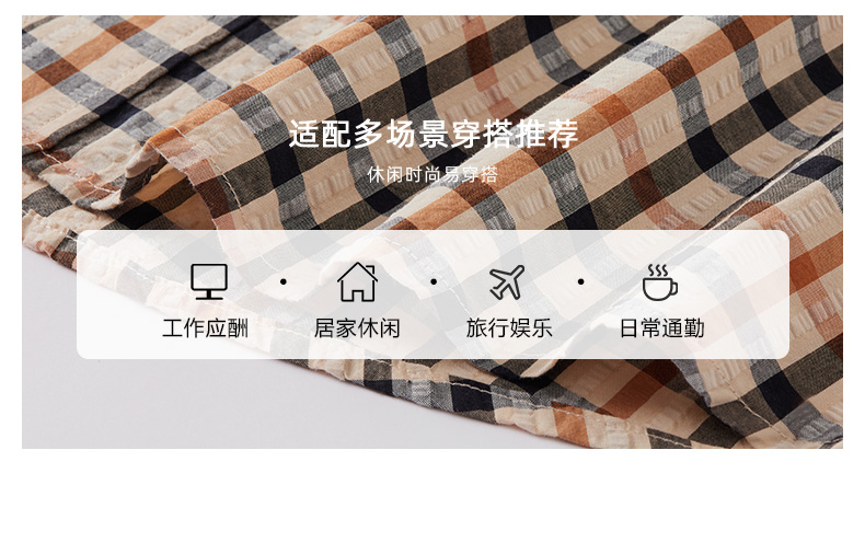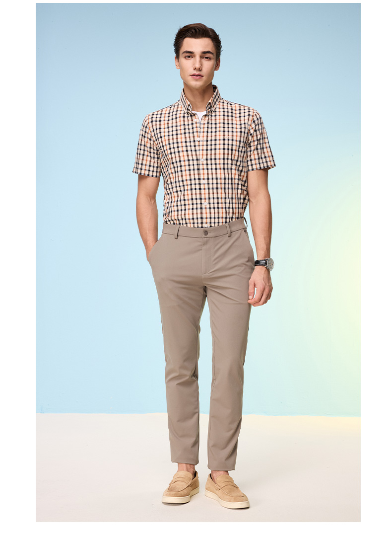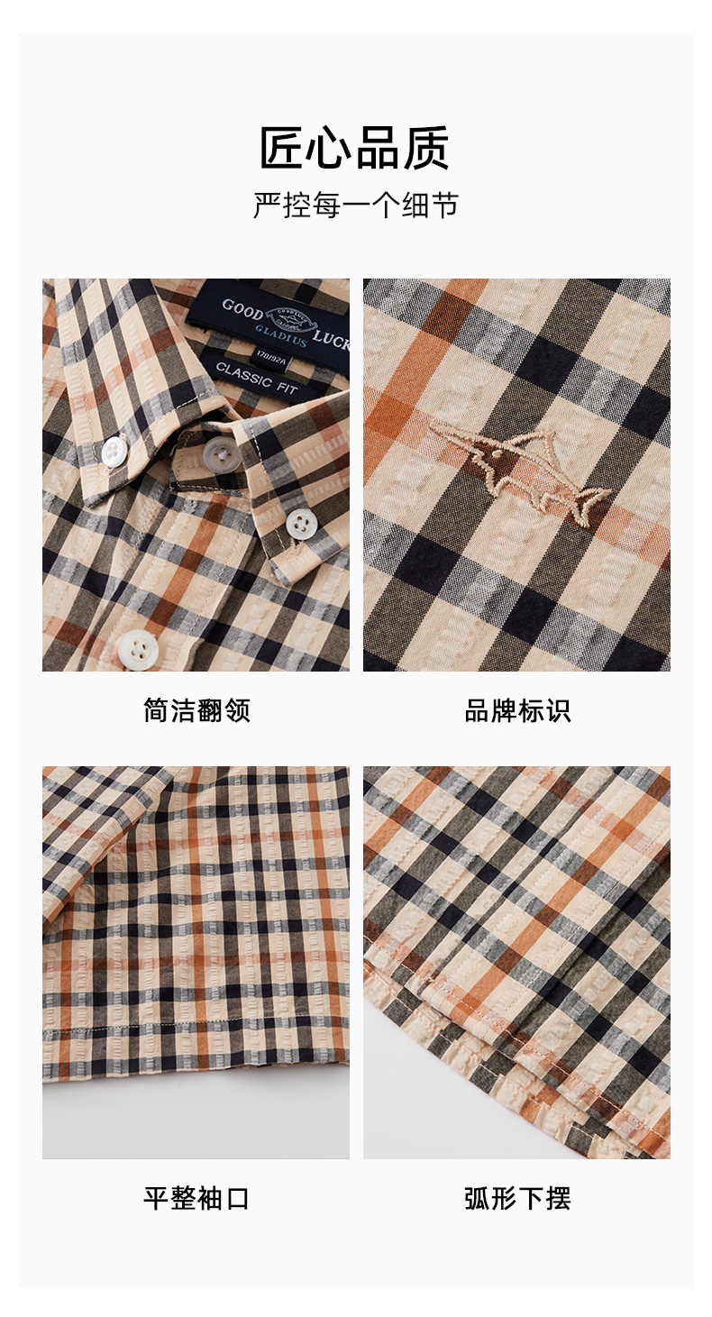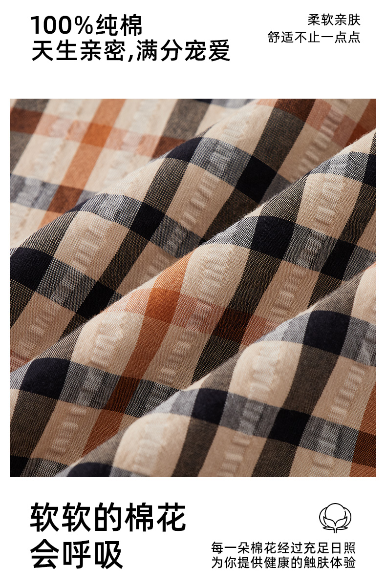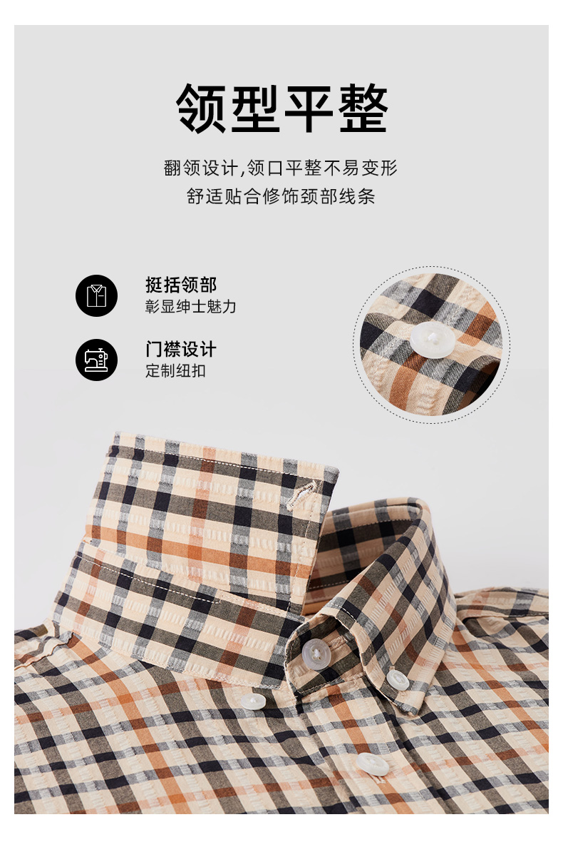 【纯棉舒适】德鲨卡其色短袖衬衫男2026夏款休闲格子上衣打底衬衣