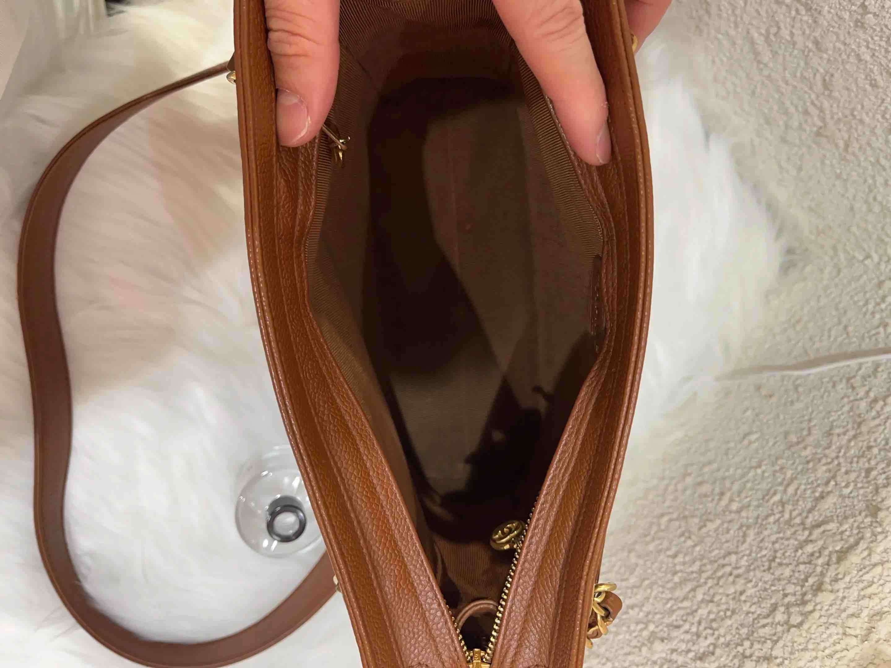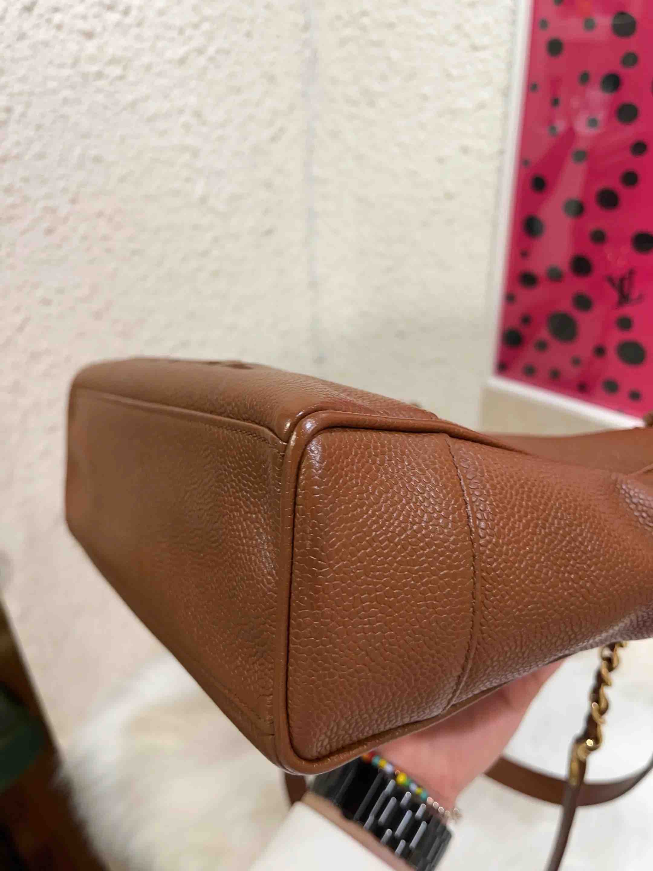【商品详情】正品二手 Chanel 中古 牛皮 棕色 奶粉包🥛95新 25*23 镭射4开。底部边角轻微使用感。经典实用。