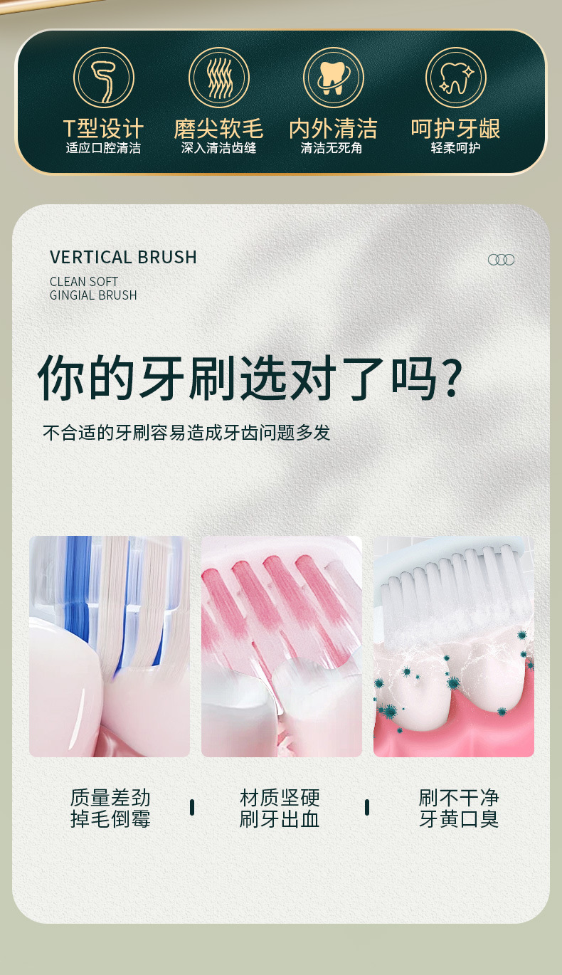 「科学竖刷!S型牙刷」软毛家庭装家用竖刷成人牙龈舌苔牙缝清洁口腔护理