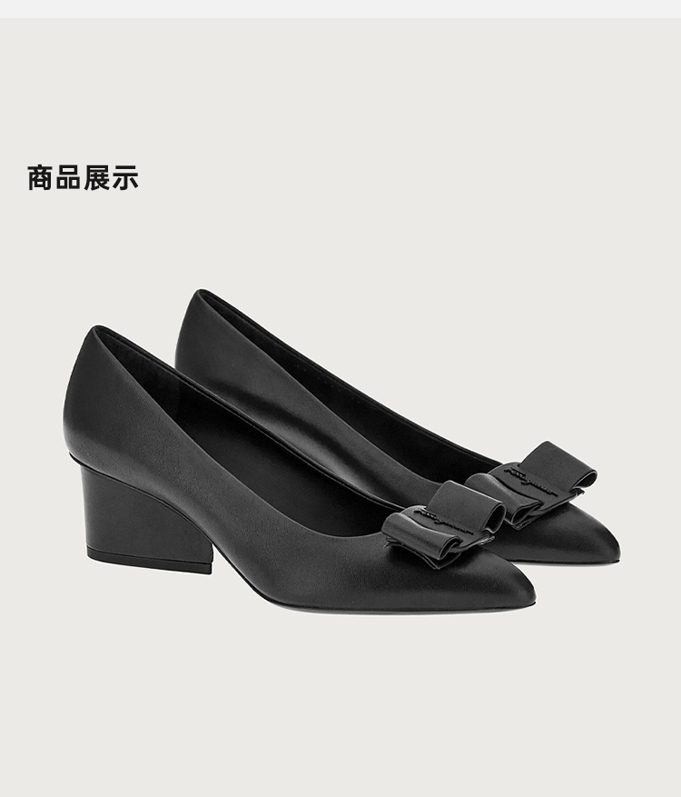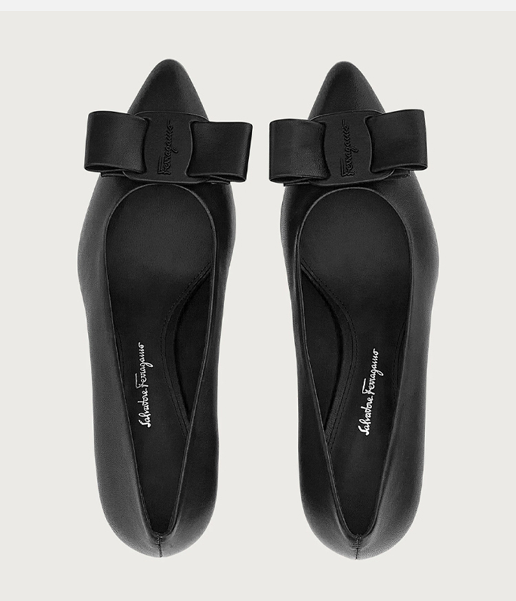 FERRAGAMO 菲拉格慕 女士皮革 VIVA 超大蝴蝶结高跟鞋 黑色 730829