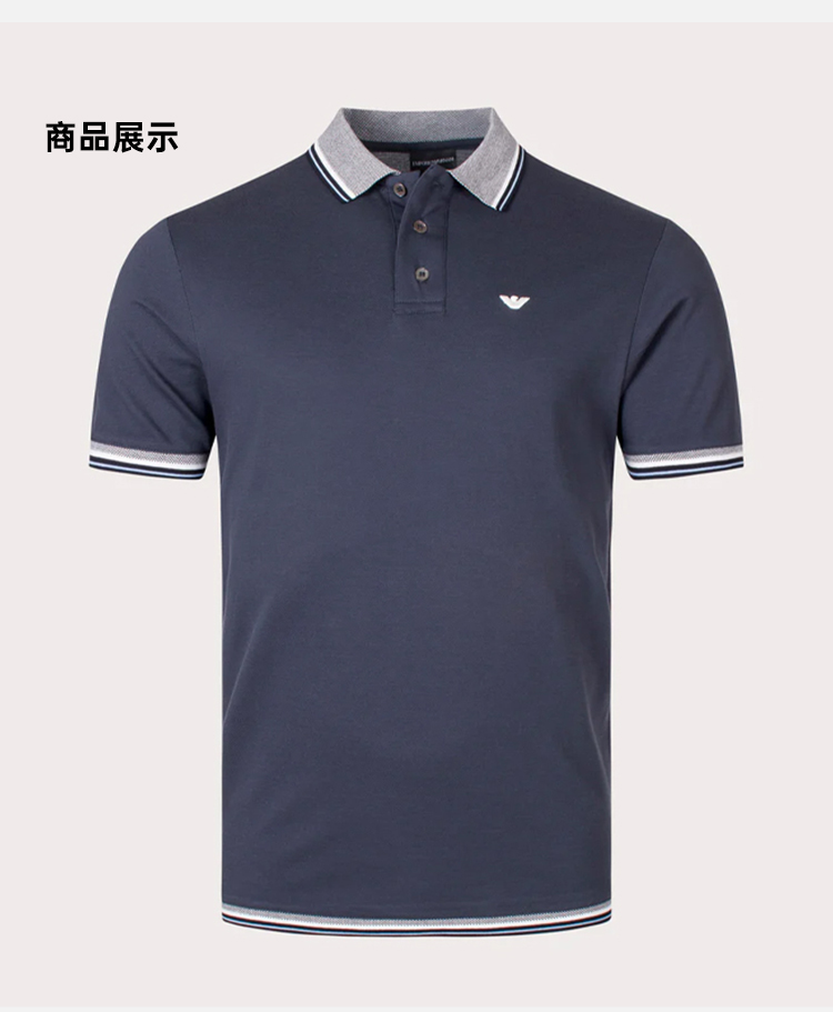 EMPORIO ARMANI 阿玛尼 男士棉质刺绣徽标短袖POLO衫 蓝色 3R1FC0 1JTKZ 0931