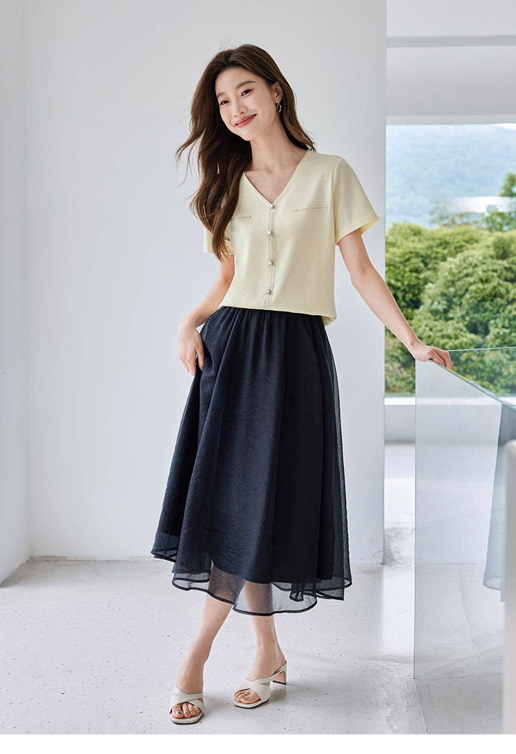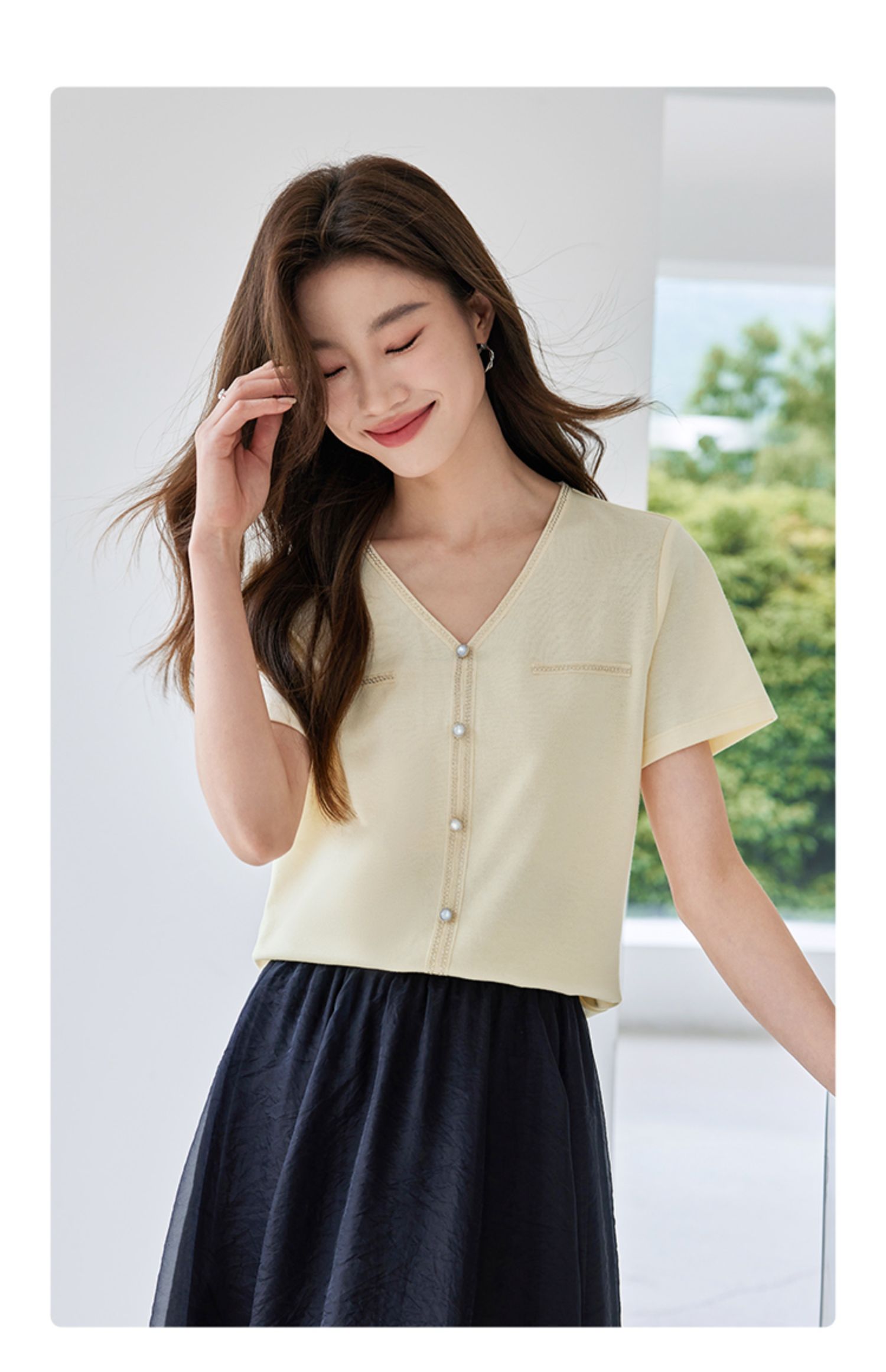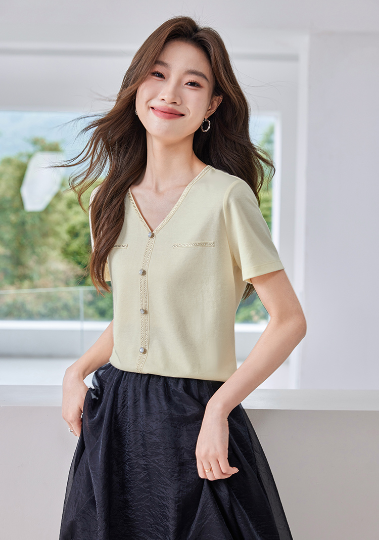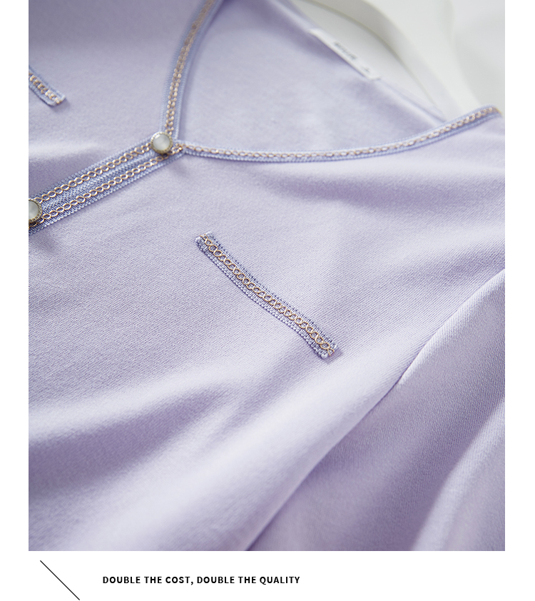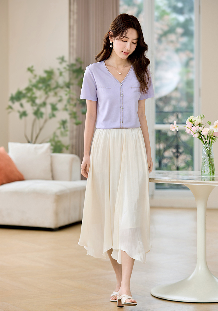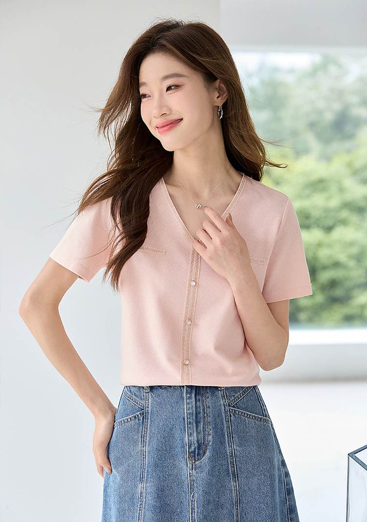 【专属特价】熙世界小香风织带针织T恤女短袖2025夏季新款气质时髦紫色V领上衣母亲节首选