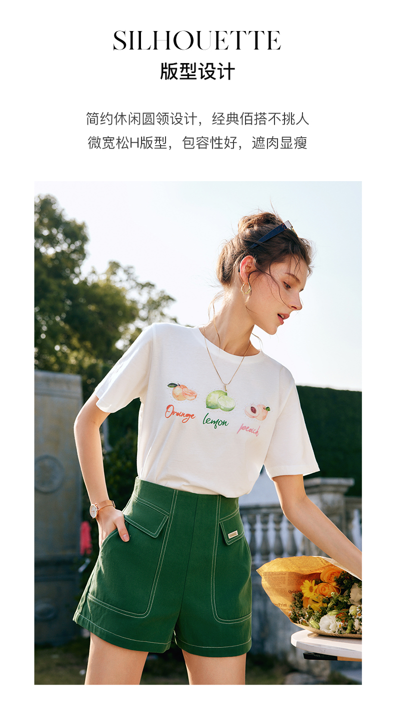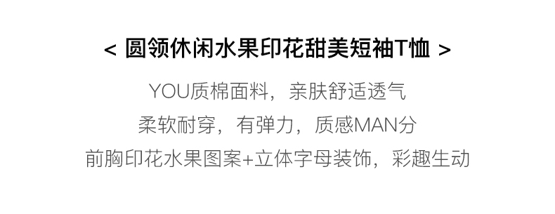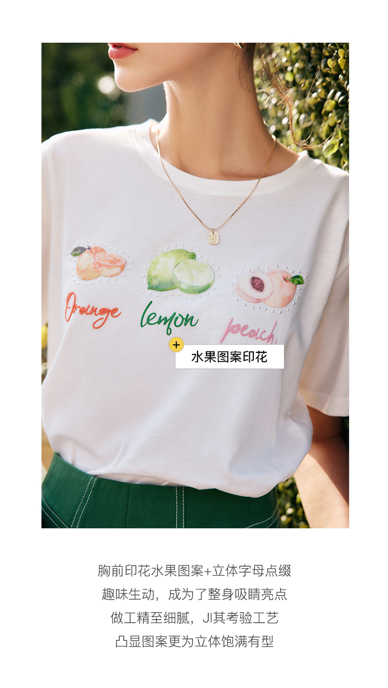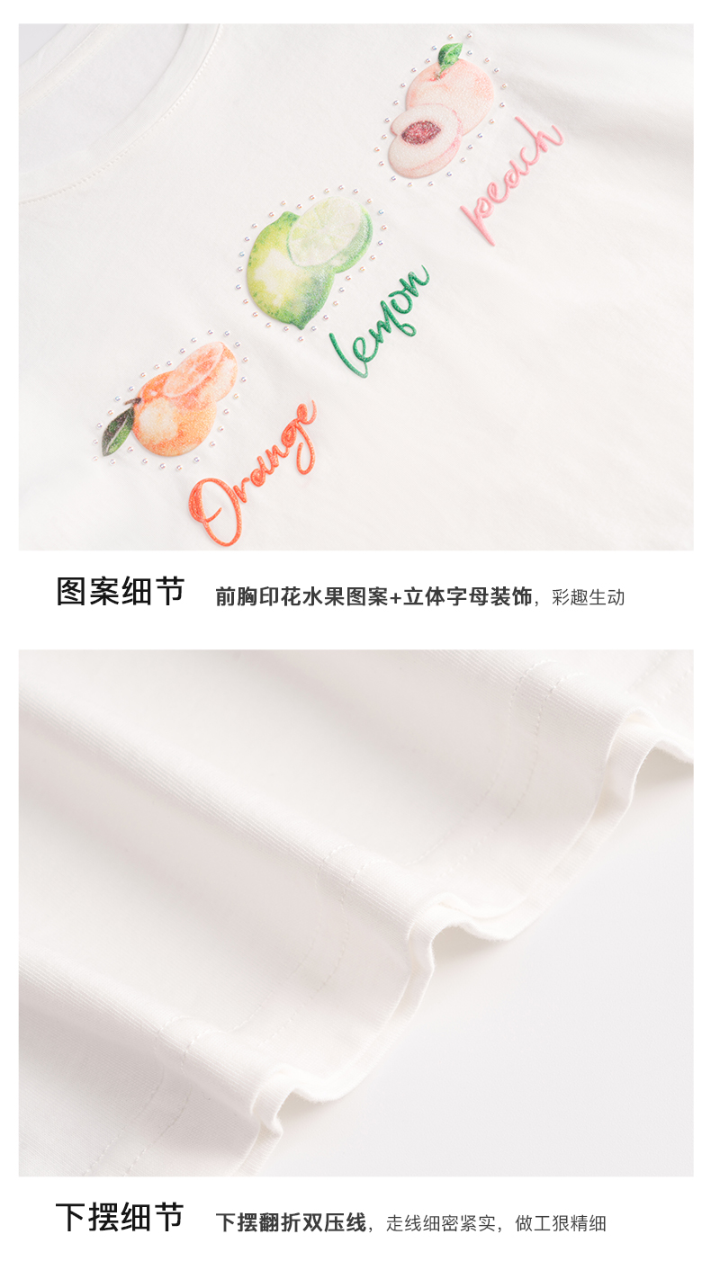 欧芮儿短袖t恤女夏季2022新款宽松时尚水果印花纯棉圆领休闲上衣