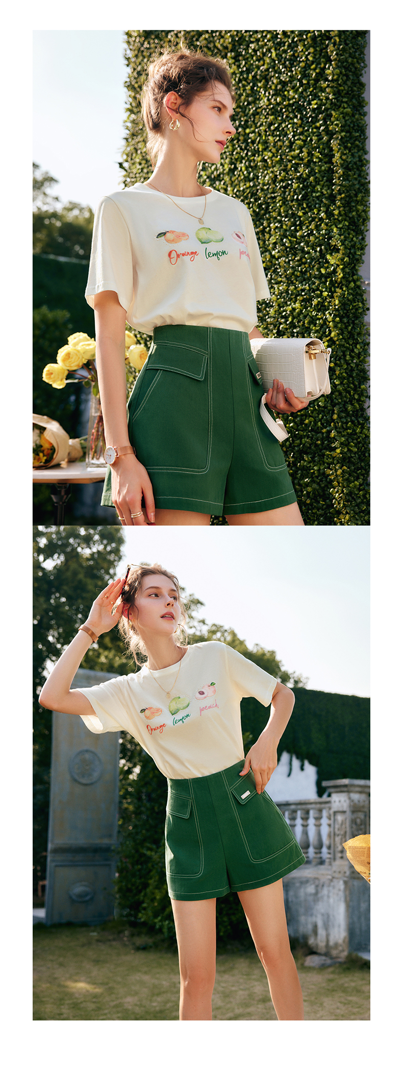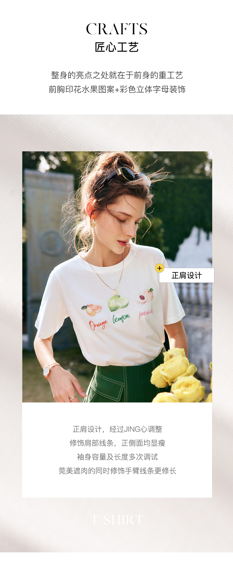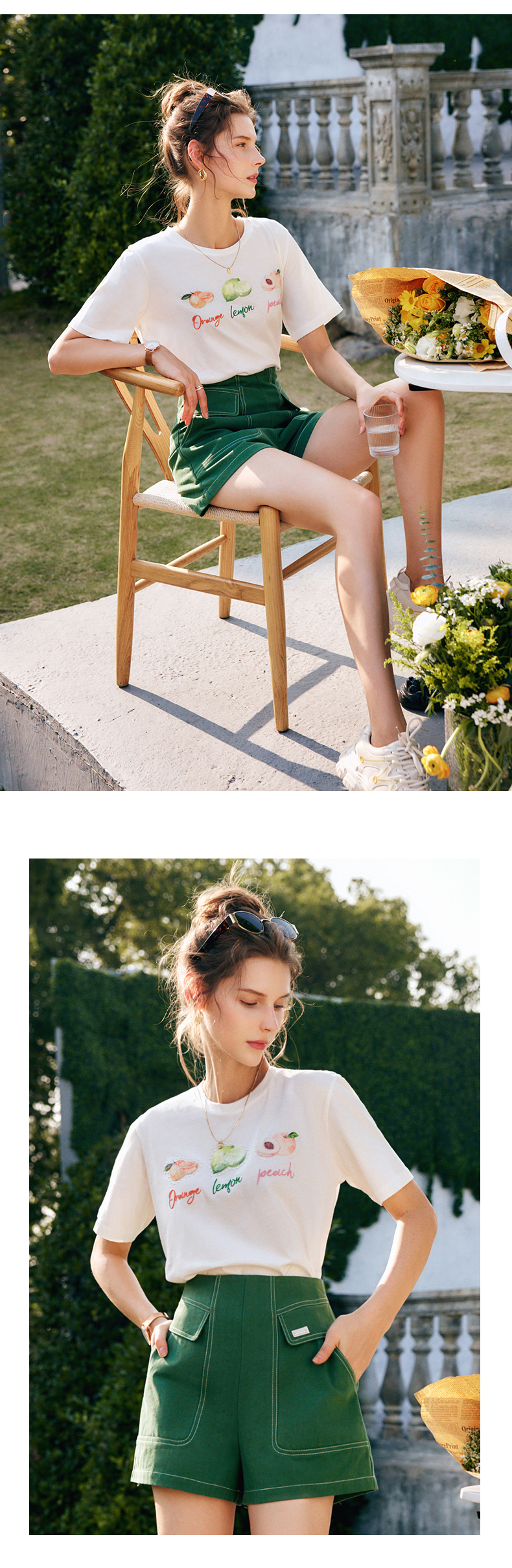 欧芮儿短袖t恤女夏季2022新款宽松时尚水果印花纯棉圆领休闲上衣