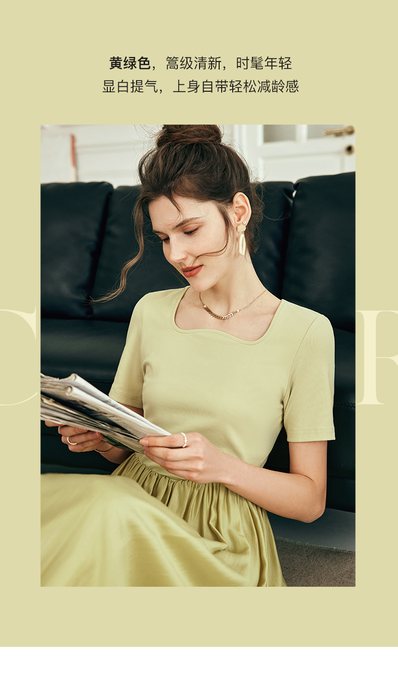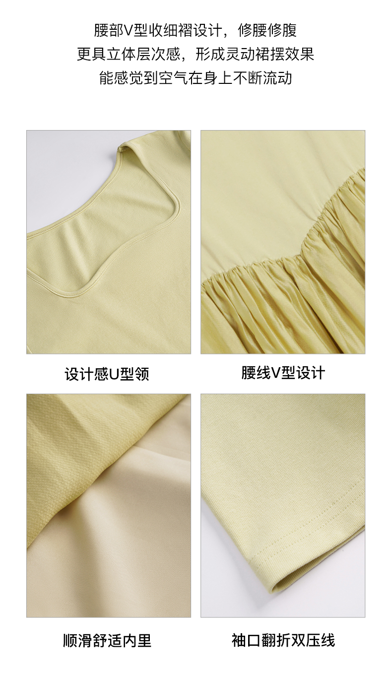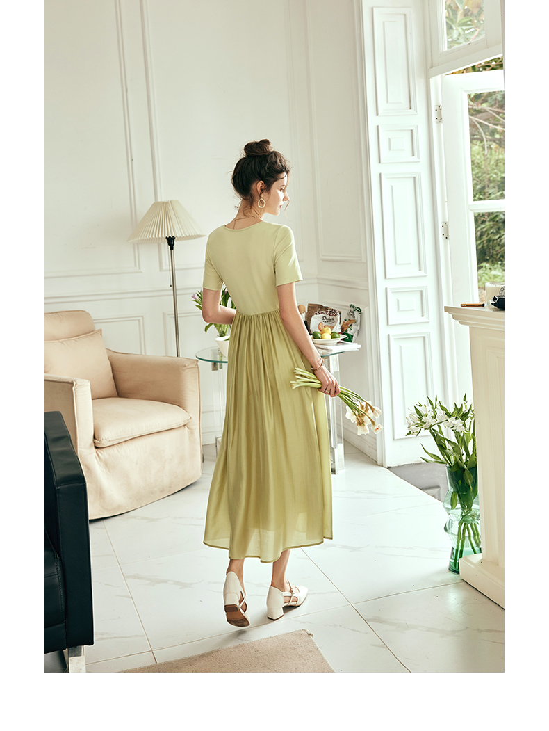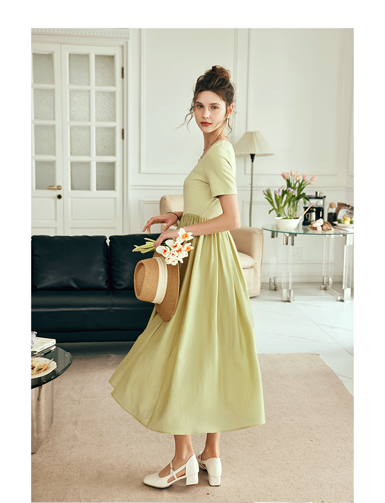 OLrain欧芮儿法式黄绿色连衣裙女夏季2023新款收腰针织拼接薄裙子