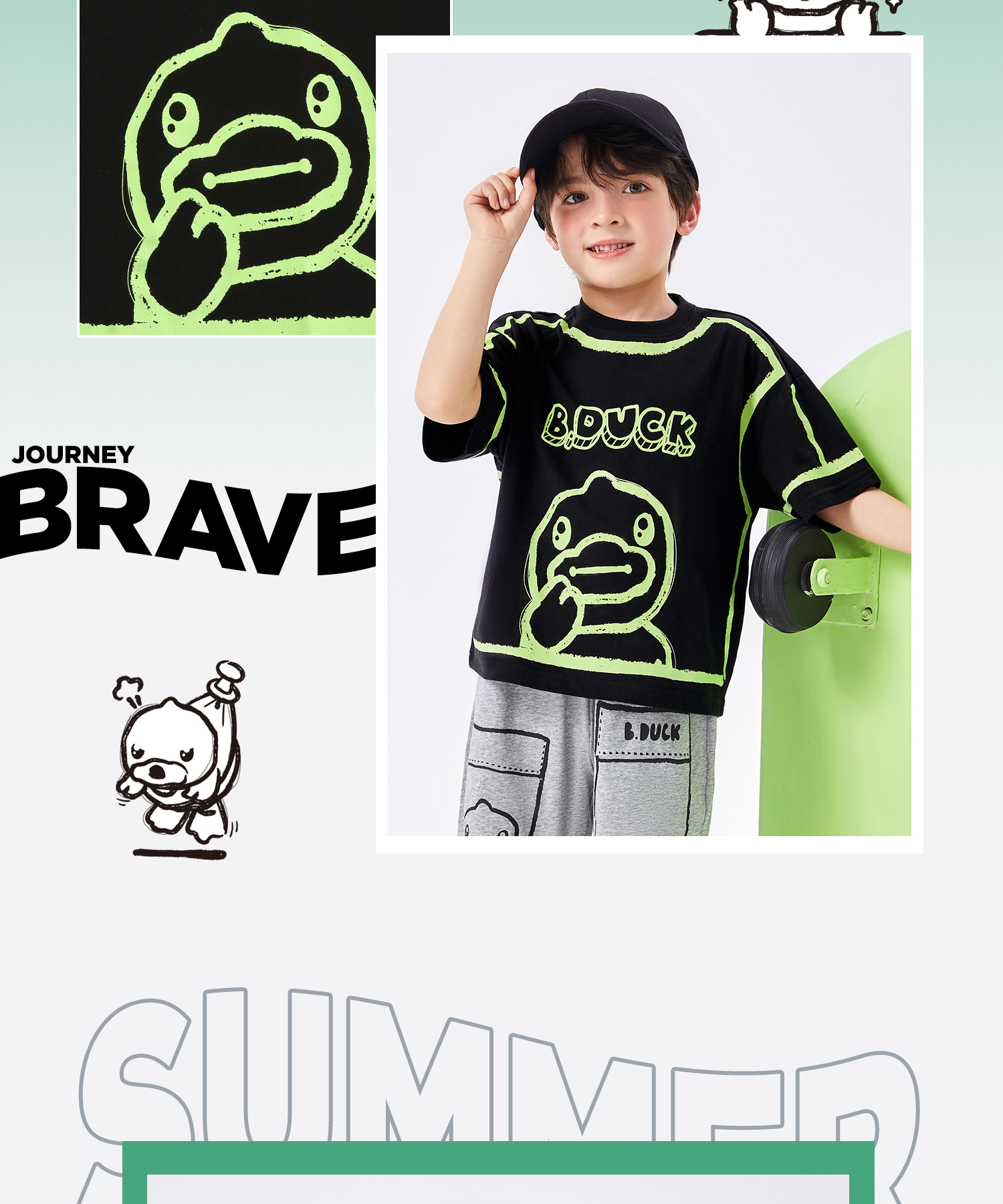 【冰感】B.Duck小黄鸭童装夏季男童短袖T恤105-150 BF2501055