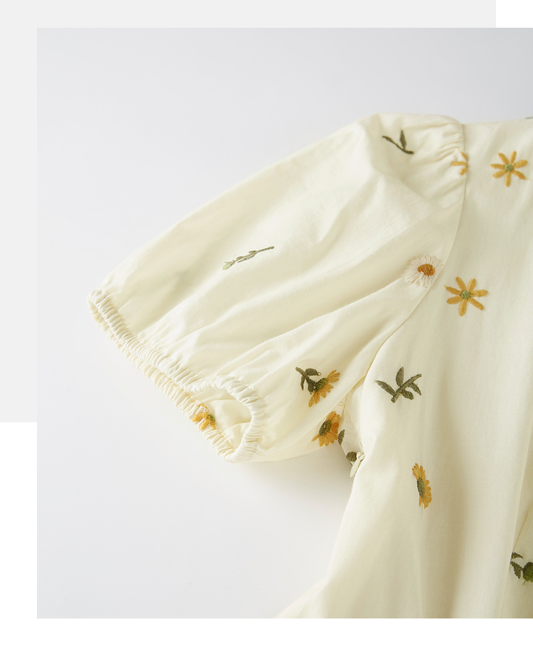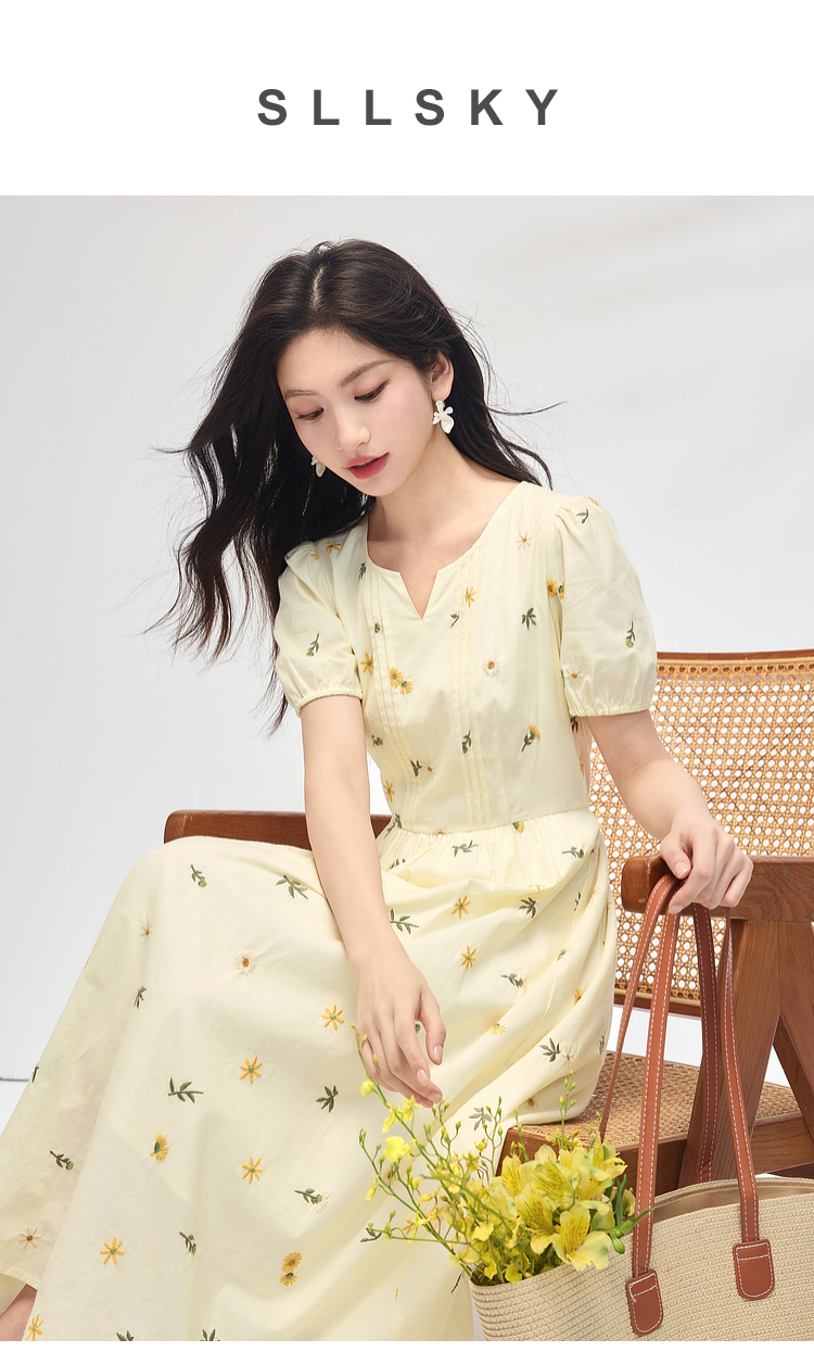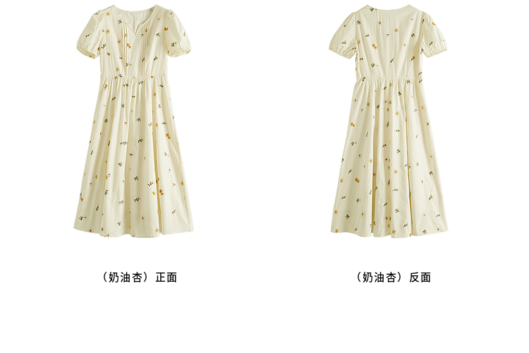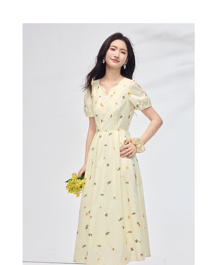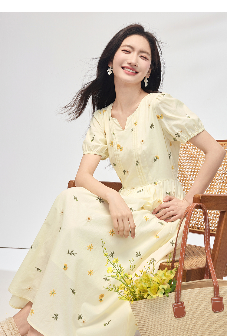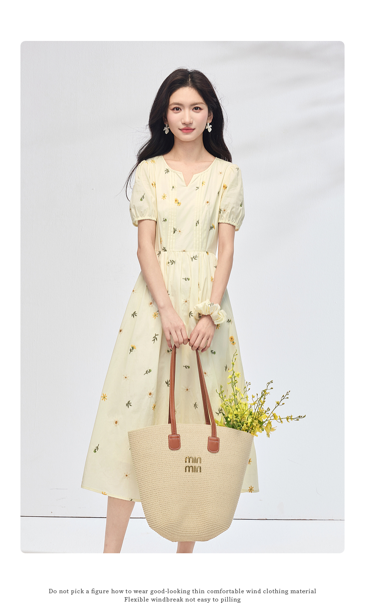 【专属特价】熙世界刺绣碎花连衣裙女短袖2025夏日新款法式显瘦收腰a字中长裙