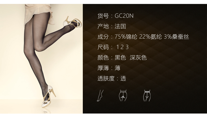 Gerbe格伯 法国原装进口天鹅绒女士连裤袜 GC20N 24d