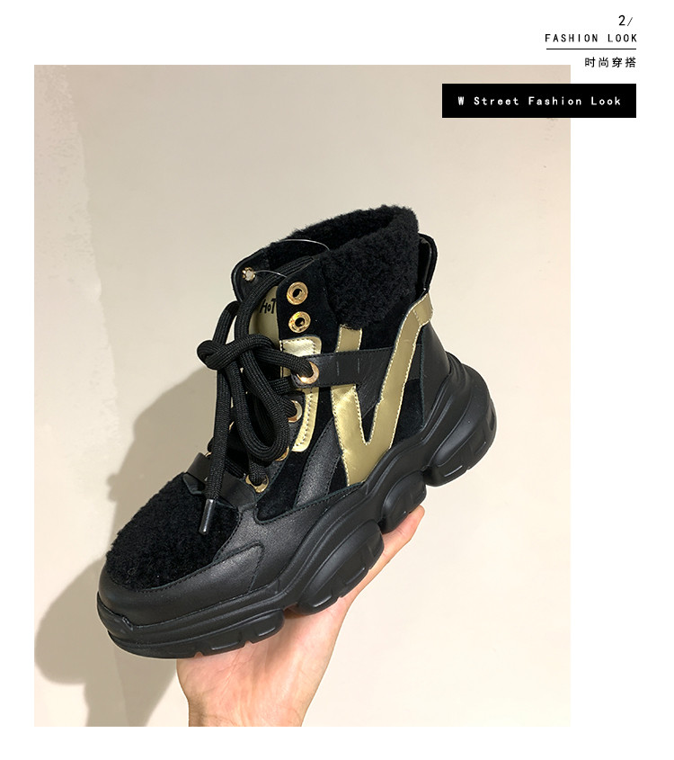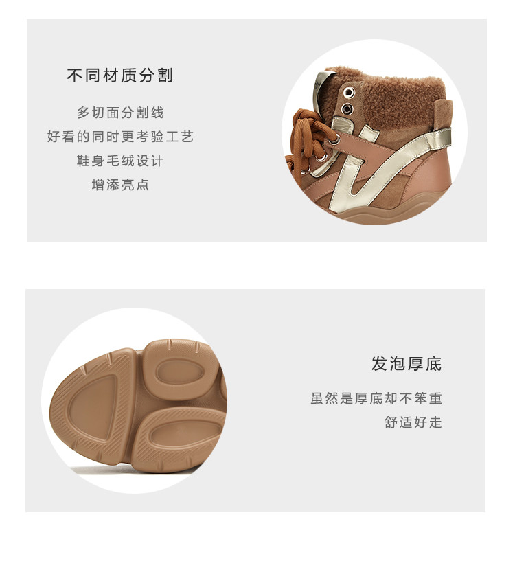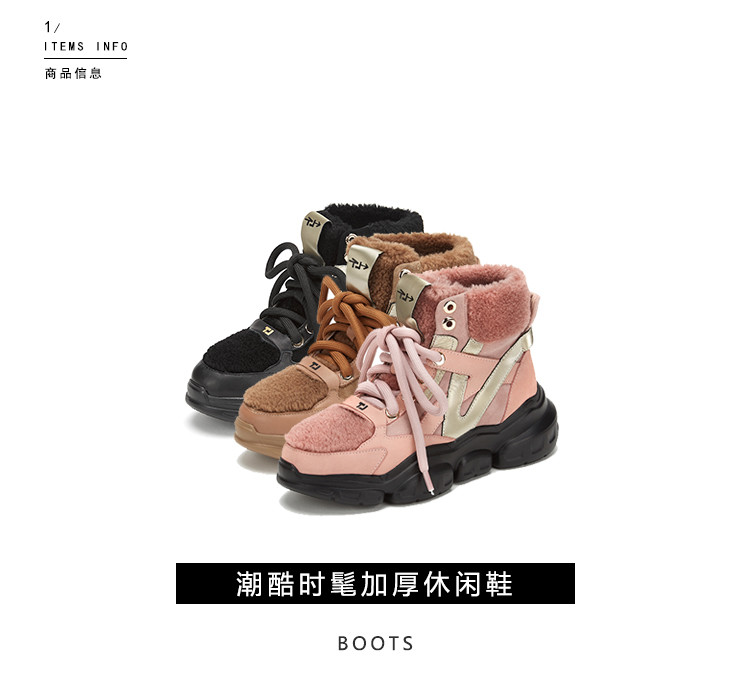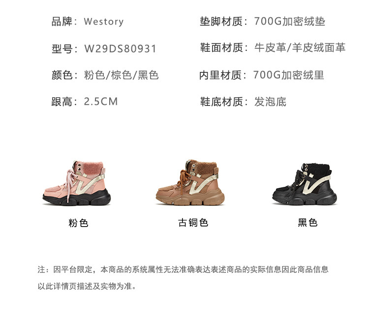 westory商场专柜同款冬款加绒保暖高帮休闲系带老爹鞋厚底雪地靴短靴女W29DS80931
