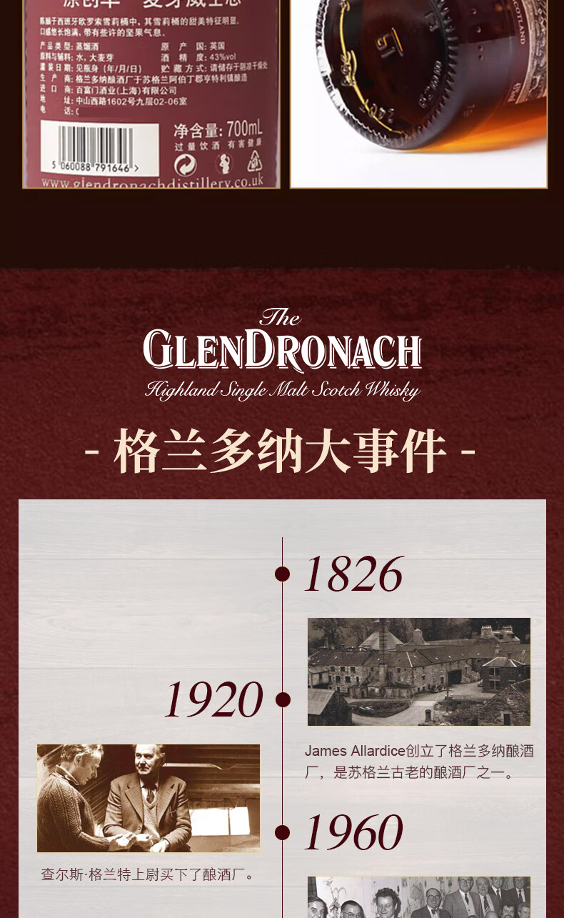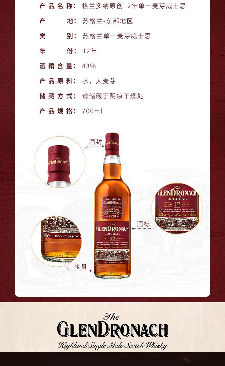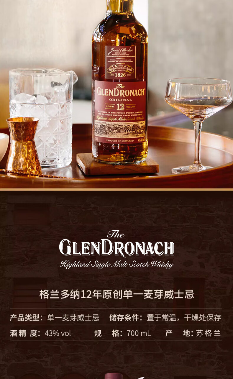 【有税版】格兰多纳12年苏格兰单一麦芽威士忌 700ml