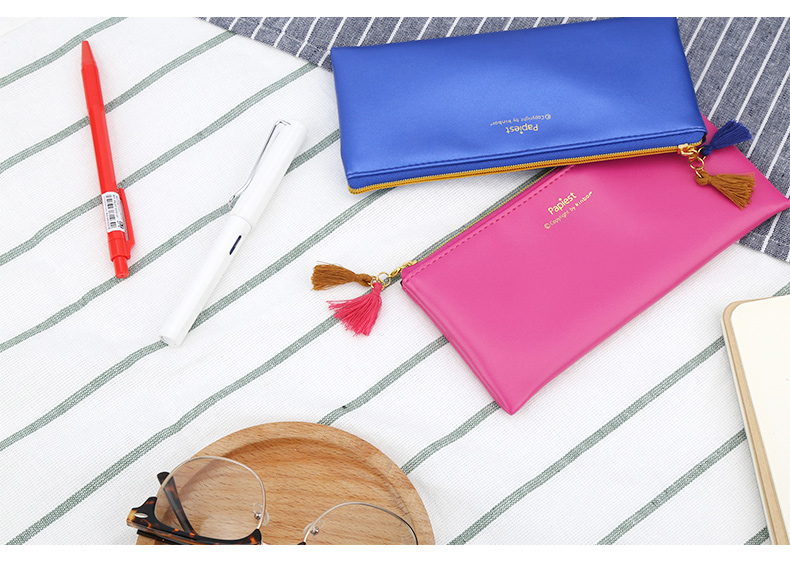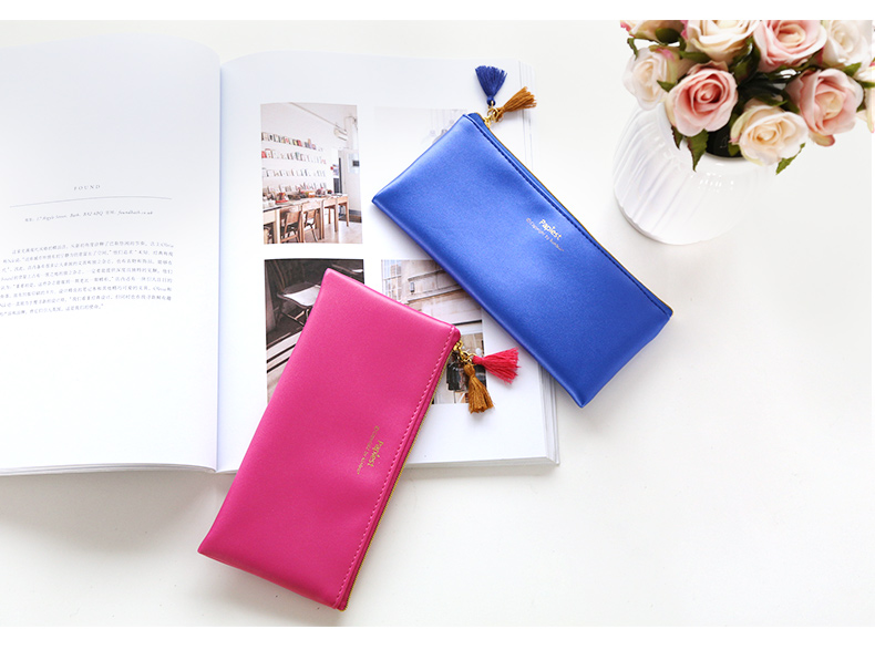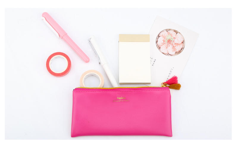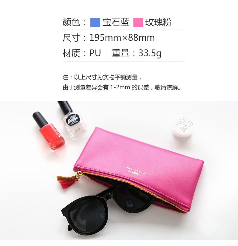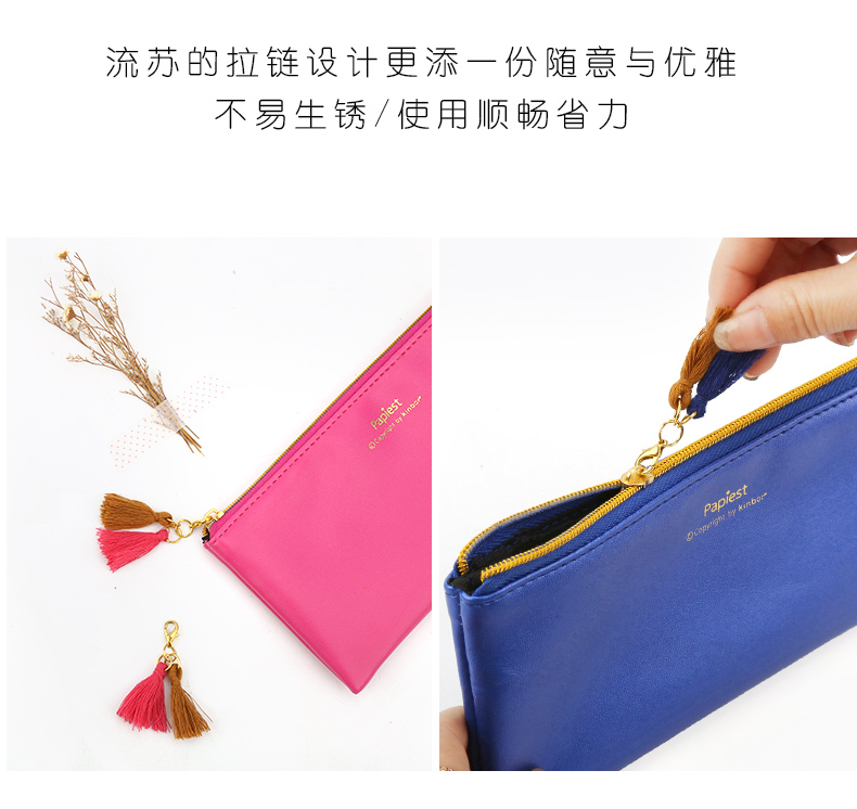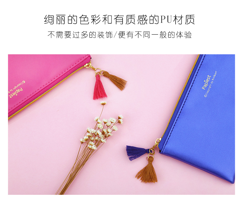 广博玫瑰粉-流苏/KBB22462-1笔袋小清新文具袋简约手包创意时尚化妆包