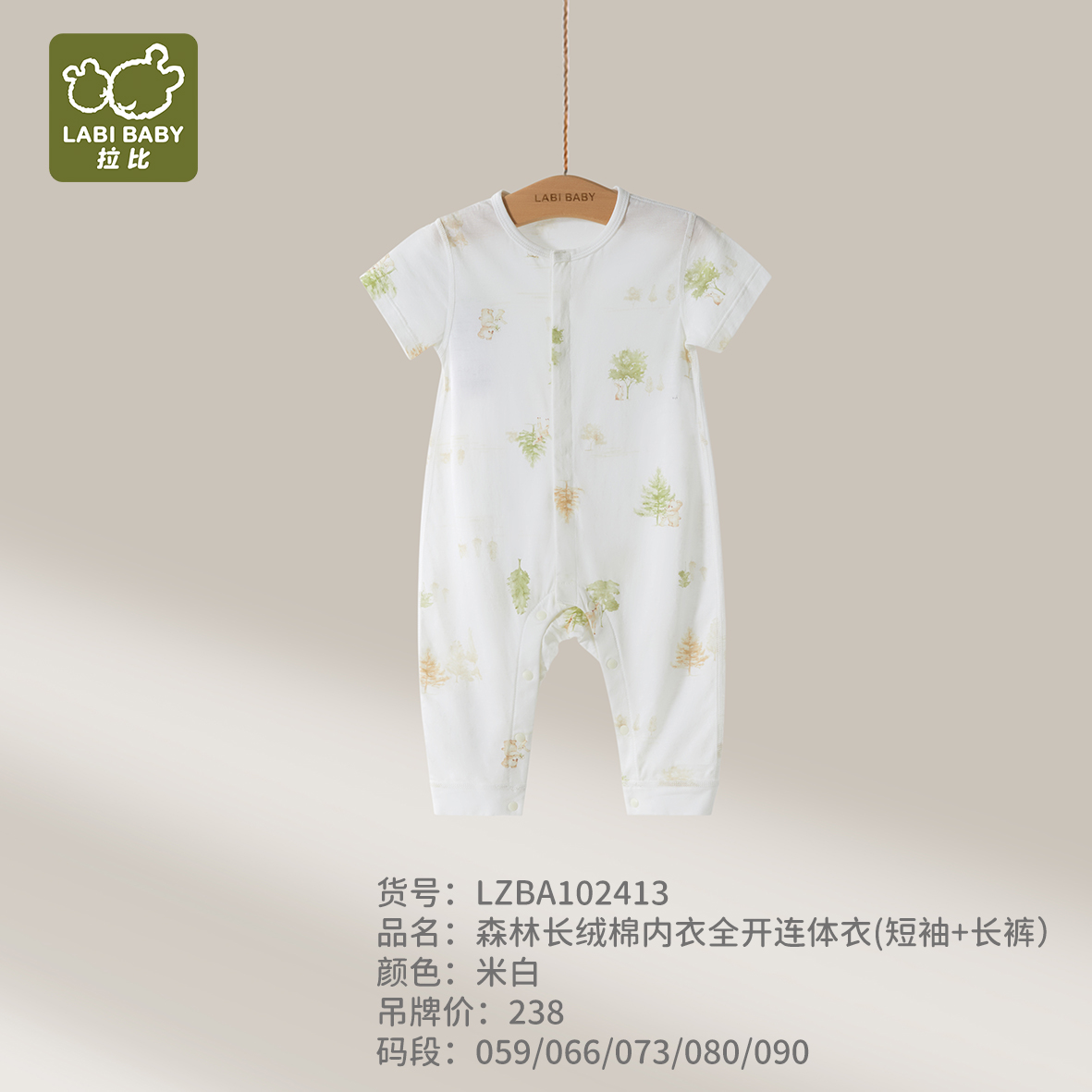 拉比内衣夏森林长绒棉内衣全开连体衣(短袖+长裤)j6LZBA102413