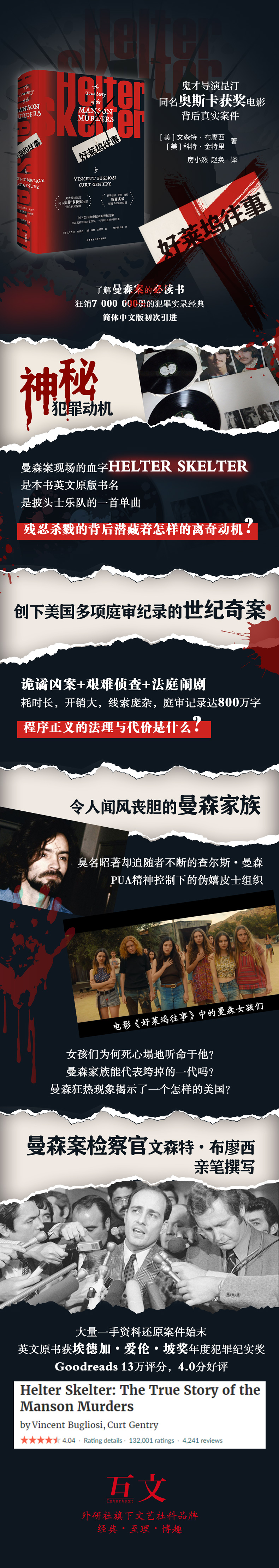 创下美国多项庭审纪录的世纪奇案,曼森案检察官亲笔撰写,一手资料还原事件始末,诡谲凶案 艰难案情 法庭闹剧 离奇动机。