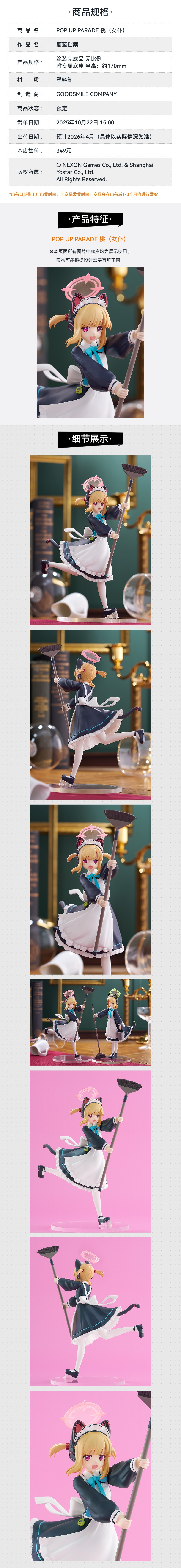 【GSC补款】POP UP PARADE 桃(女仆)蔚蓝档案 手办模玩