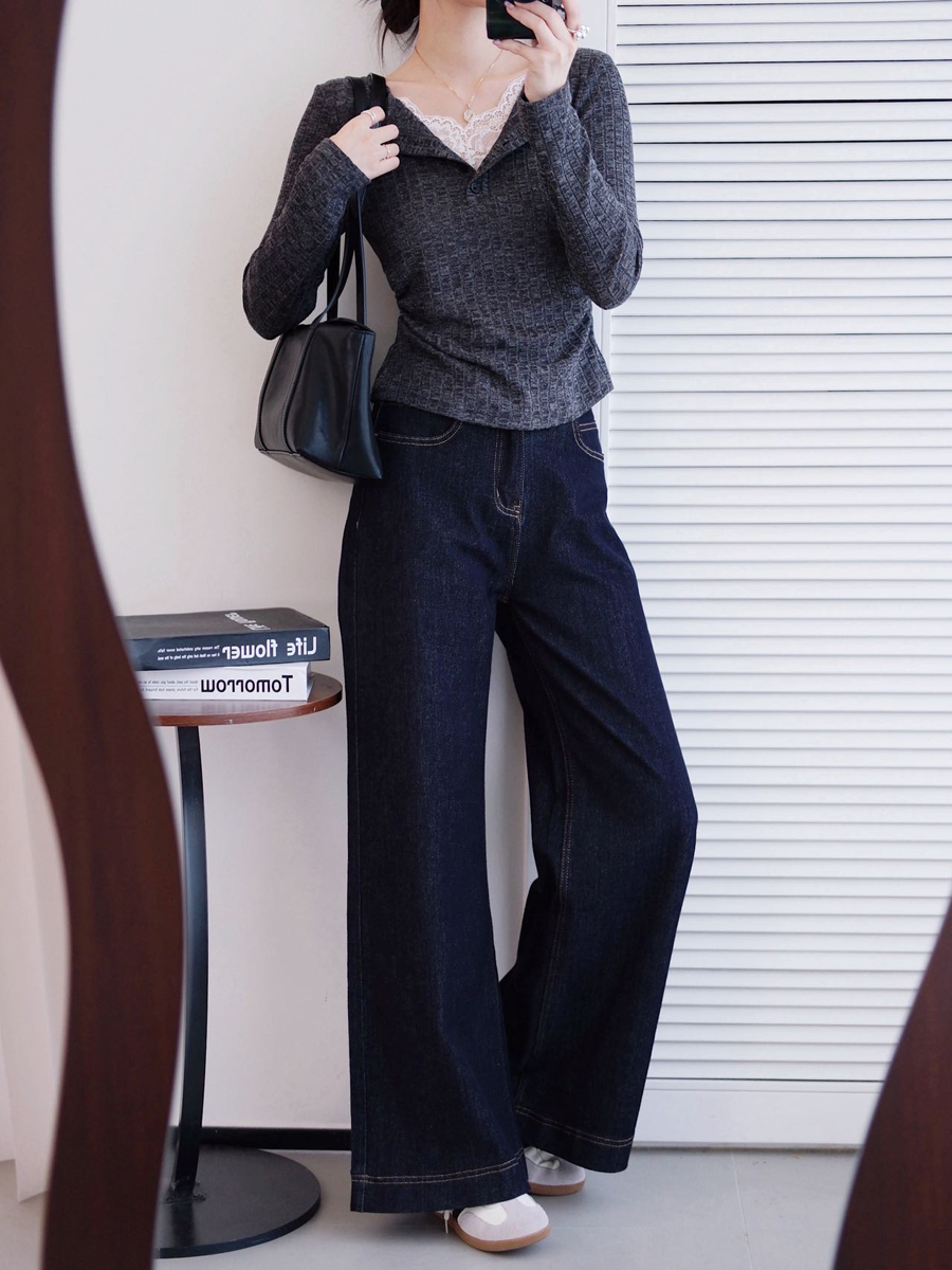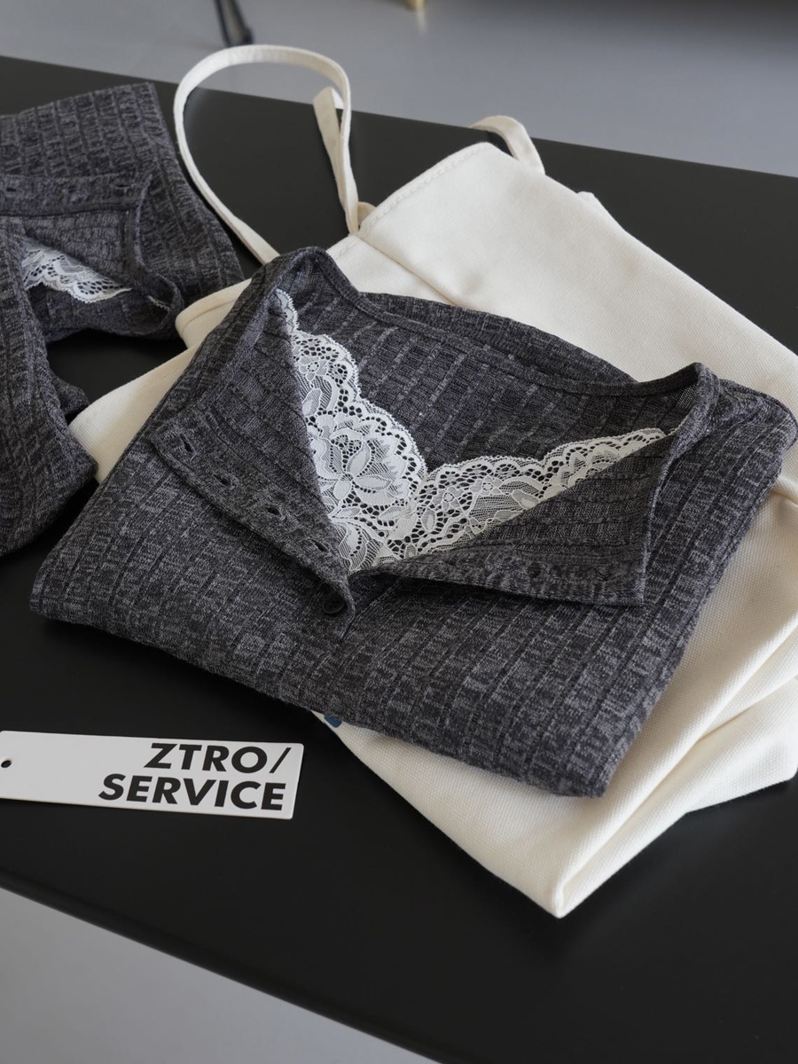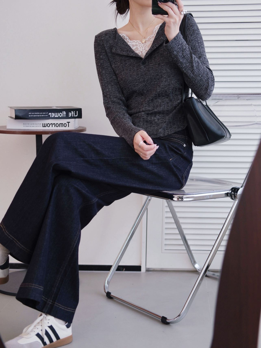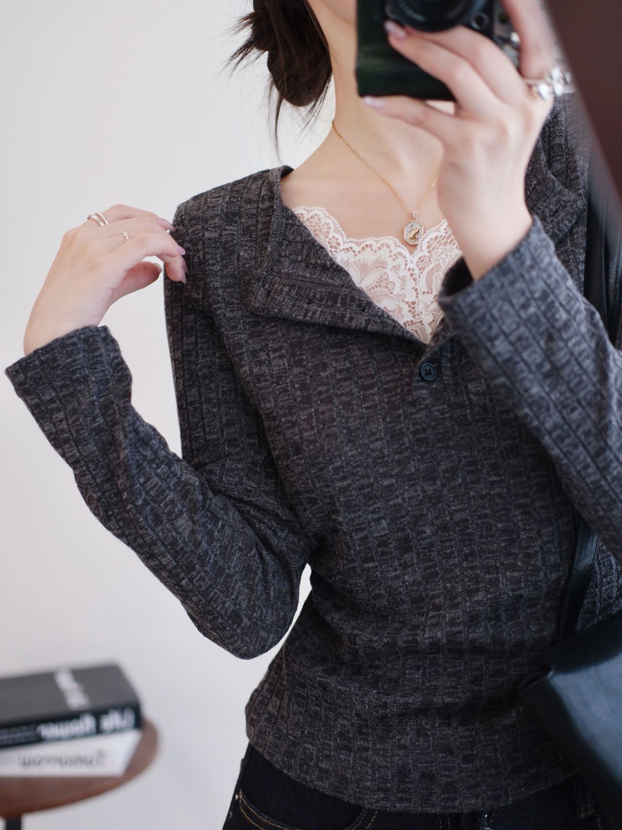 【百图lulu定制】【邂逅蕾丝T恤】【全码预售7天发】翻领 V领蕾丝拼接 两侧收腰抽褶 超弹长袖T恤