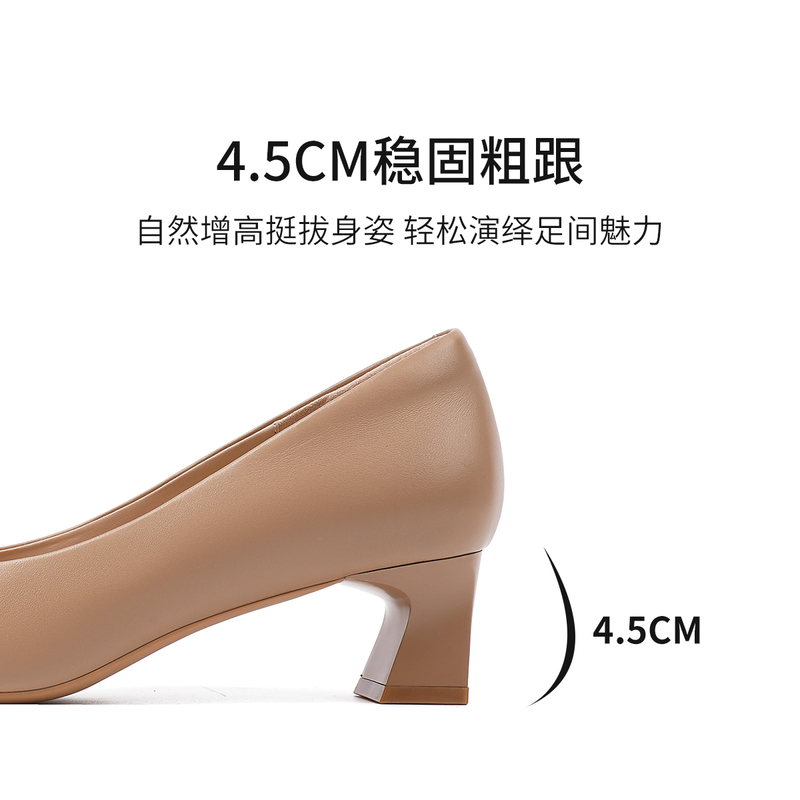 HARSON哈森25春季新品女鞋法式粗跟尖头浅口单鞋HS257119
