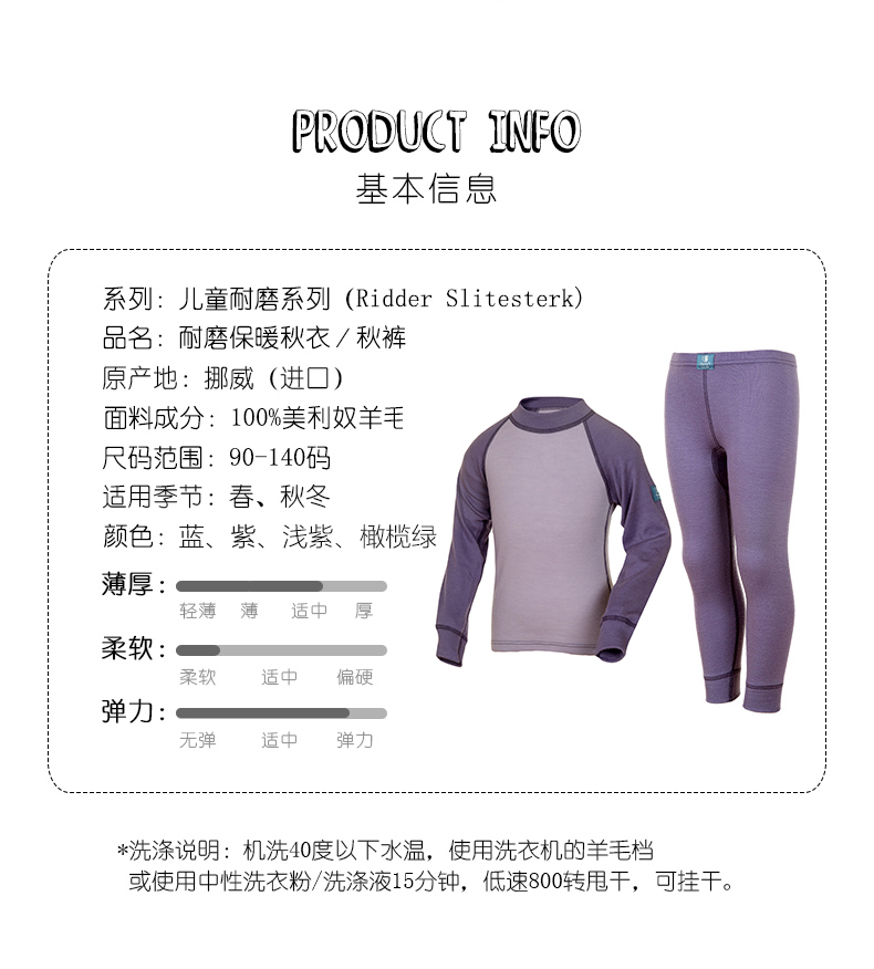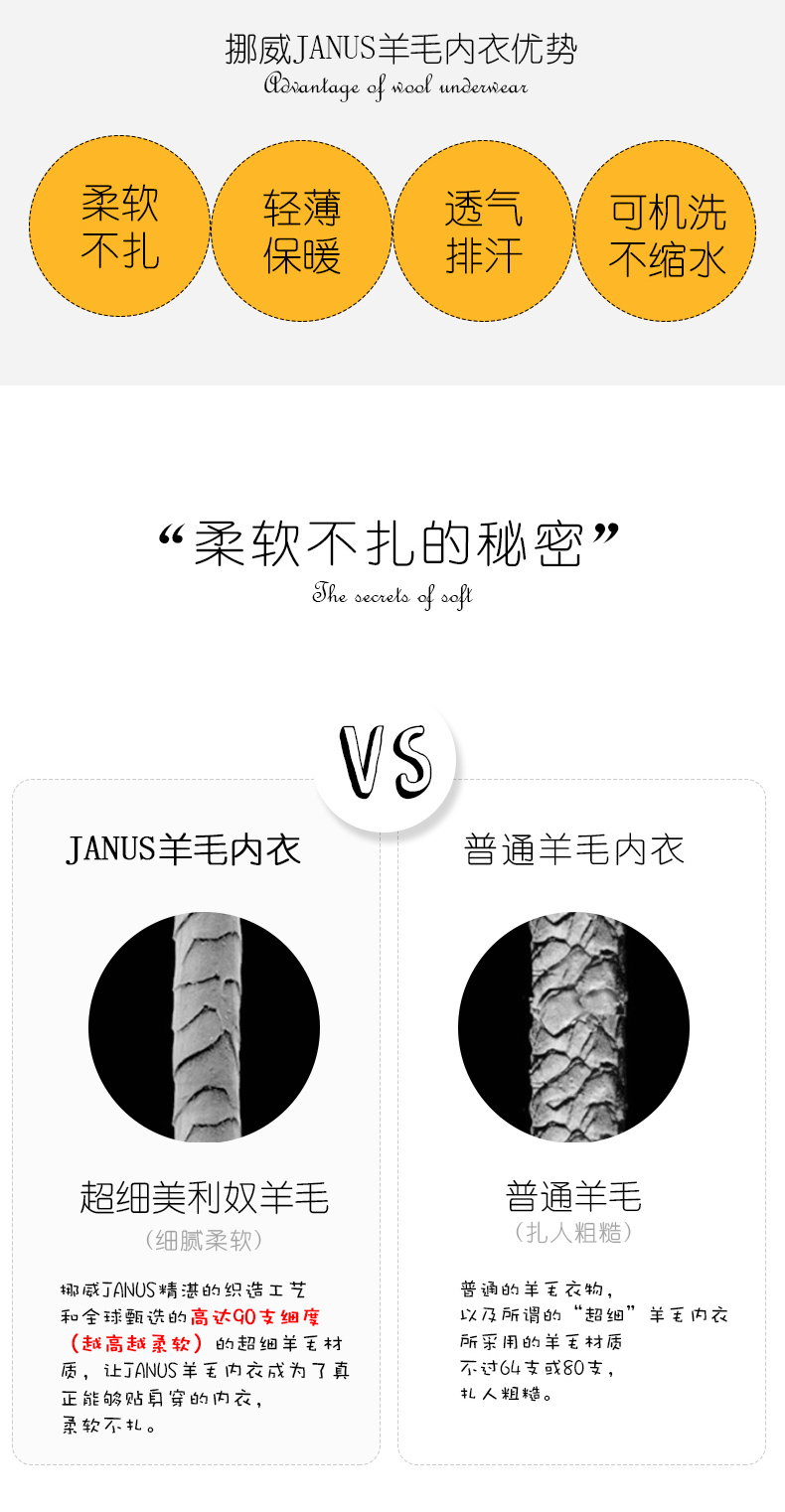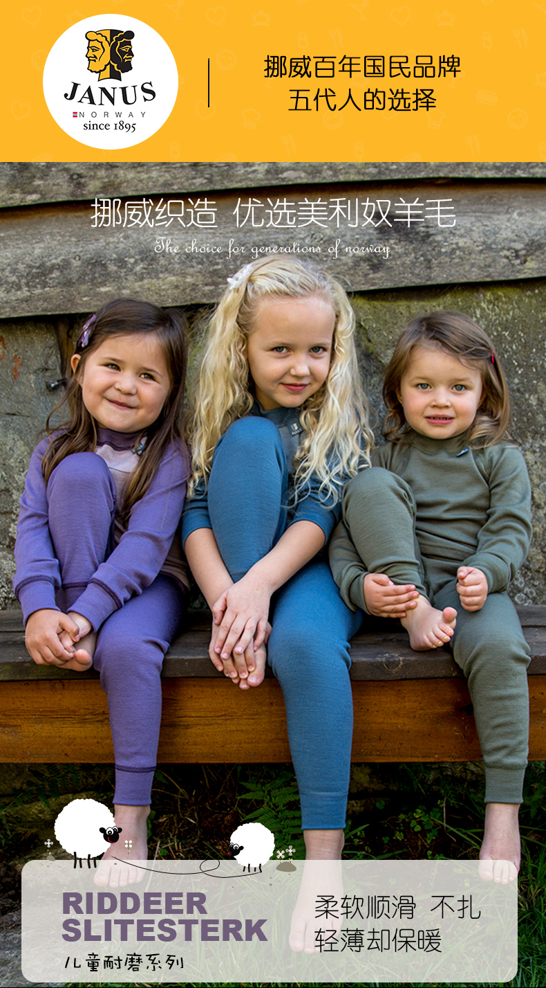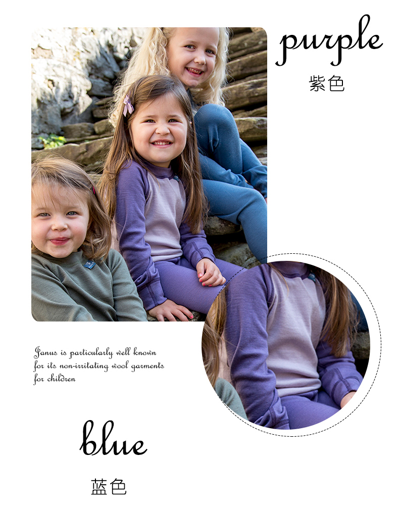JANUS挪威进口秋冬童装儿童羊毛加厚打底内衣排汗透气内衣秋衣裤