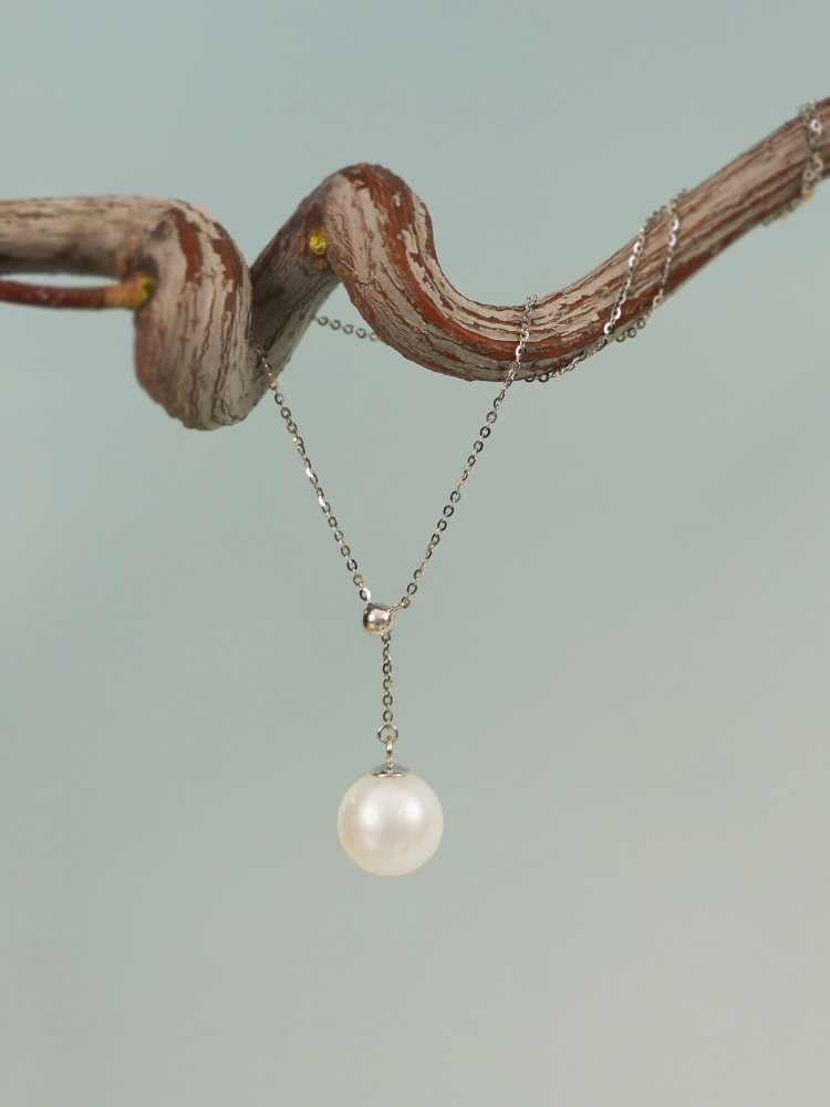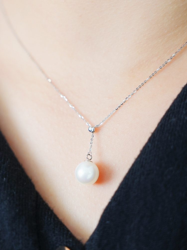 【现货】18K金珍珠项链水滴Y字锁骨链气质设计感【尺寸9.2mm】 【一物一证书】