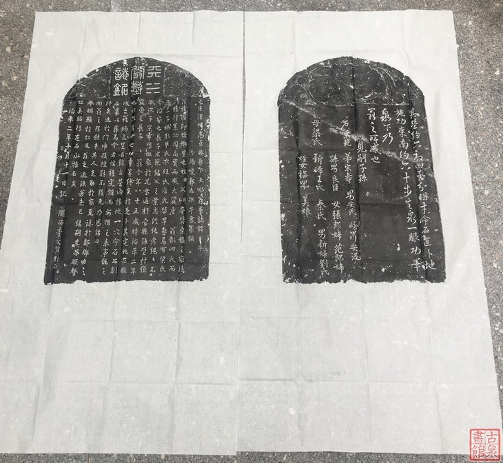 原碑乌金!新出北宋郭下天水翁墓志,形制特殊,书法漂亮,有二王笔意,包原拓,墨拓部分70/48,一套两张。