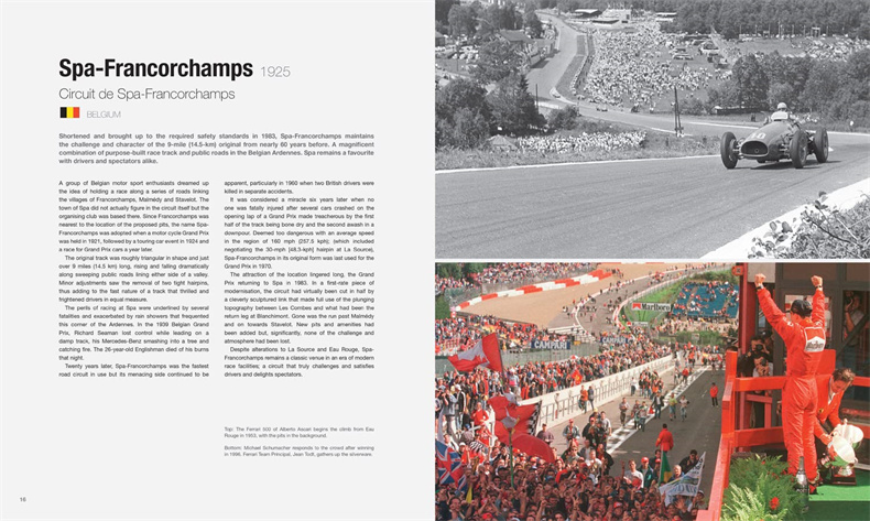 本书由屡获殊荣的记者莫里斯-汉密尔顿(Maurice Hamilton)撰写,每条赛道都配有定制的电子地图,是一级方程式赛车赛道的指南。每个赛道都按时间顺序排列,从举办大奖赛的蒙扎赛道开始,然后是斯帕赛道、纽博格林赛道、摩纳哥赛道和银石赛道等赛道,一直到 F1 新的目的地: 迈阿密。
