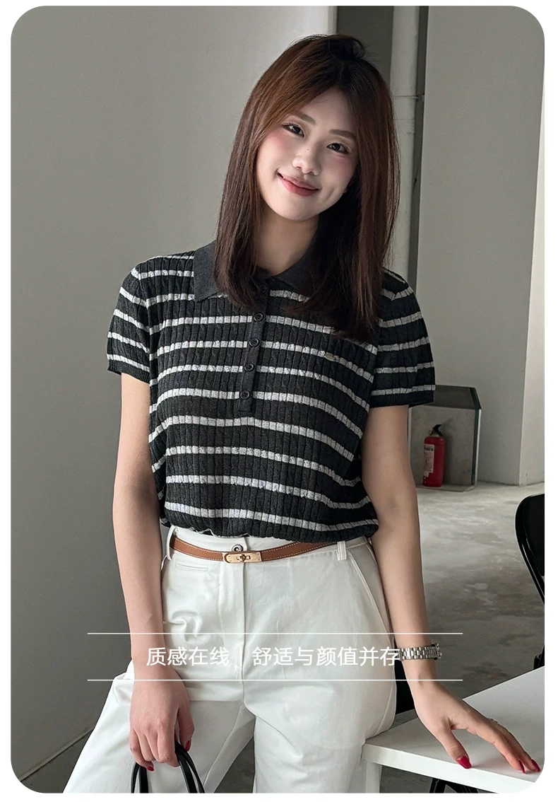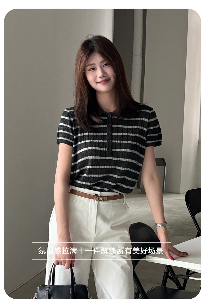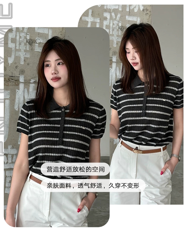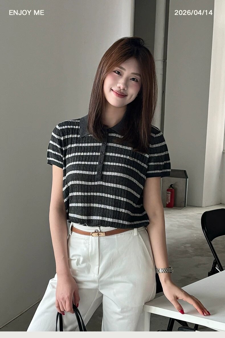 【门店同款】ENJOY夏季Polo领条纹针织 171493292